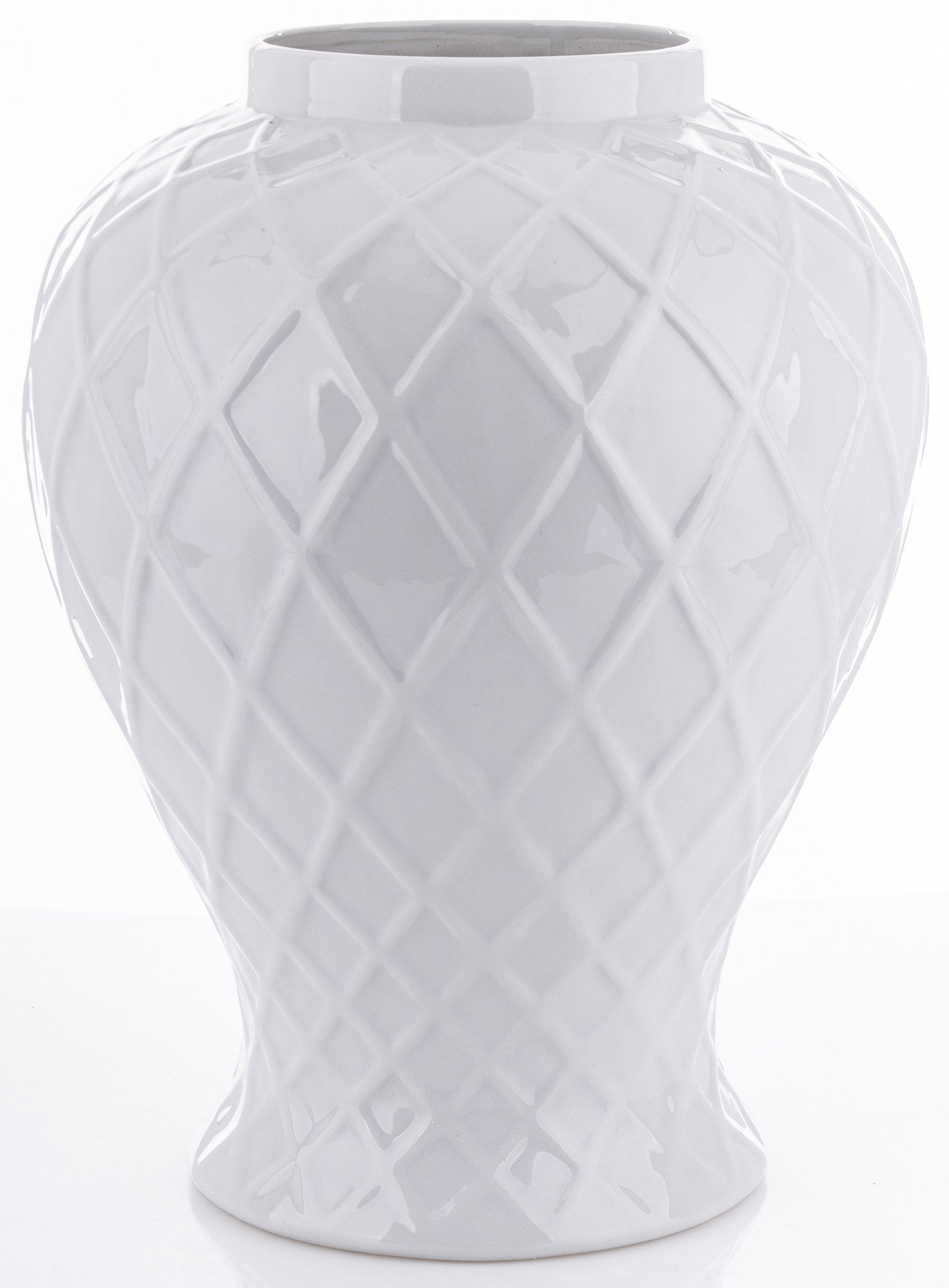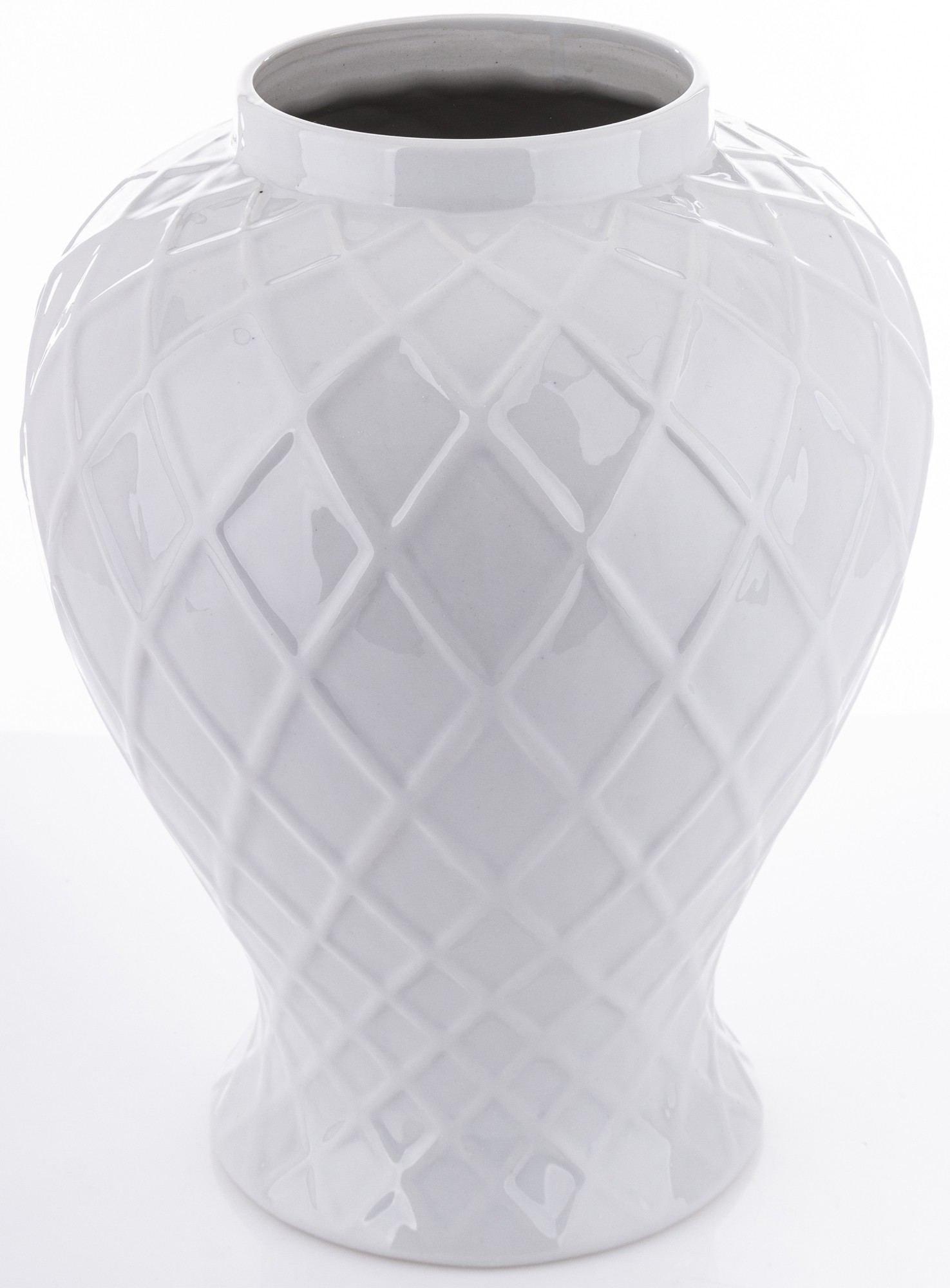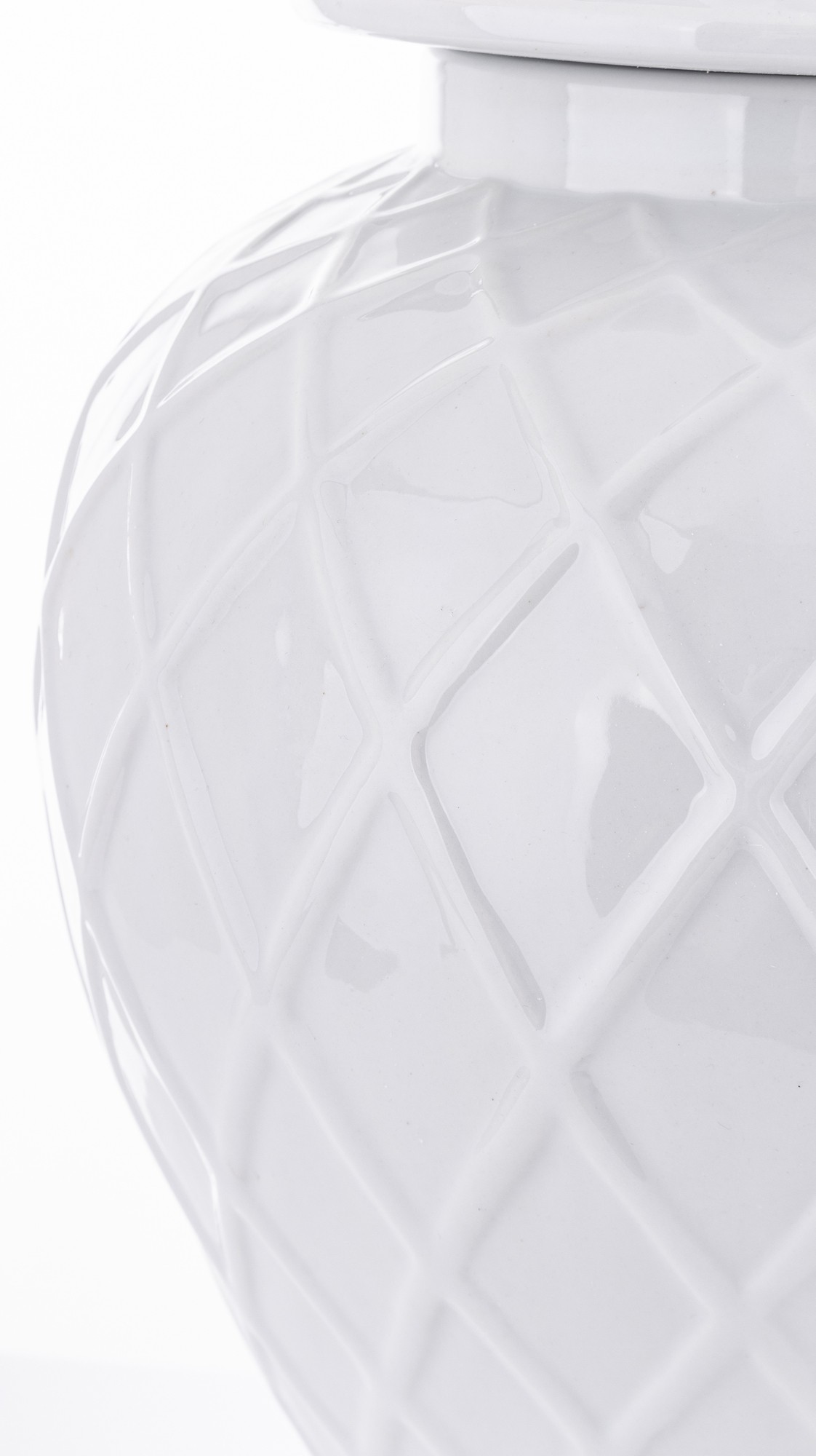 Ceramiczna amfora Linea2 to harmonijne połączenie prostoty i elegancji. Produkt w kolorze białym, z geometrycznymi liniami układającymi się w delikatny wzór, stanowi wyjątkowy element dekoracyjny dla każdego wnętrza.