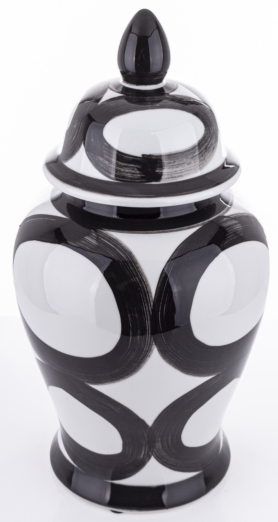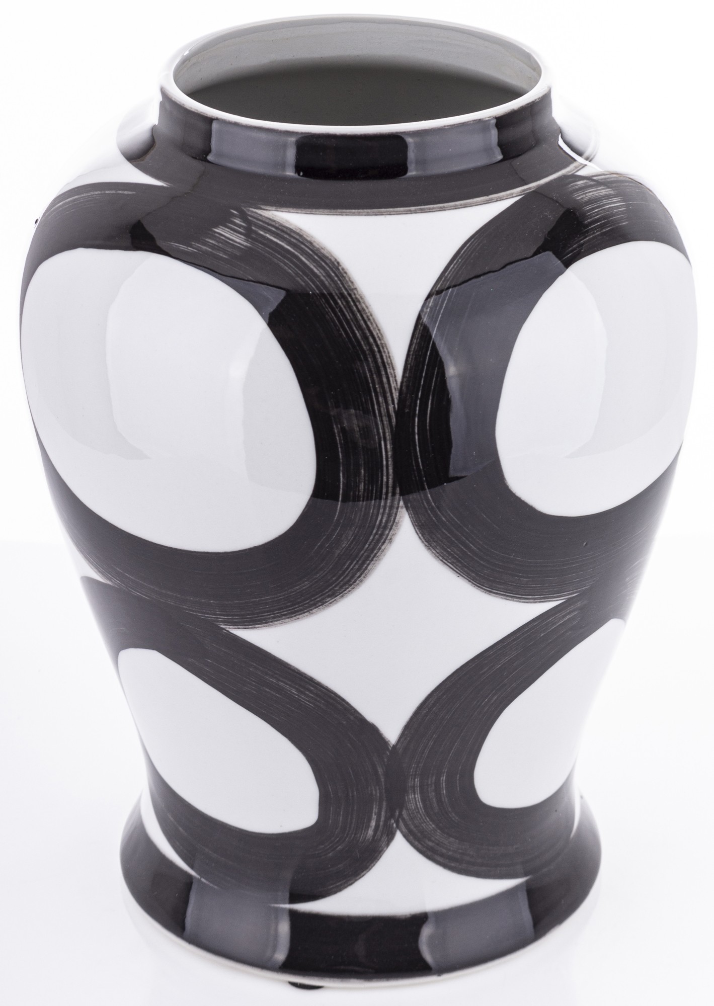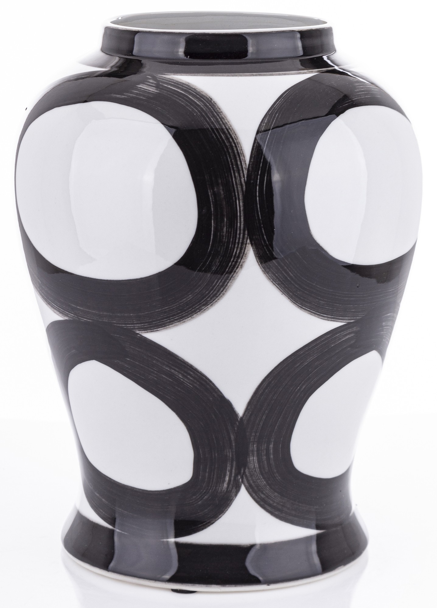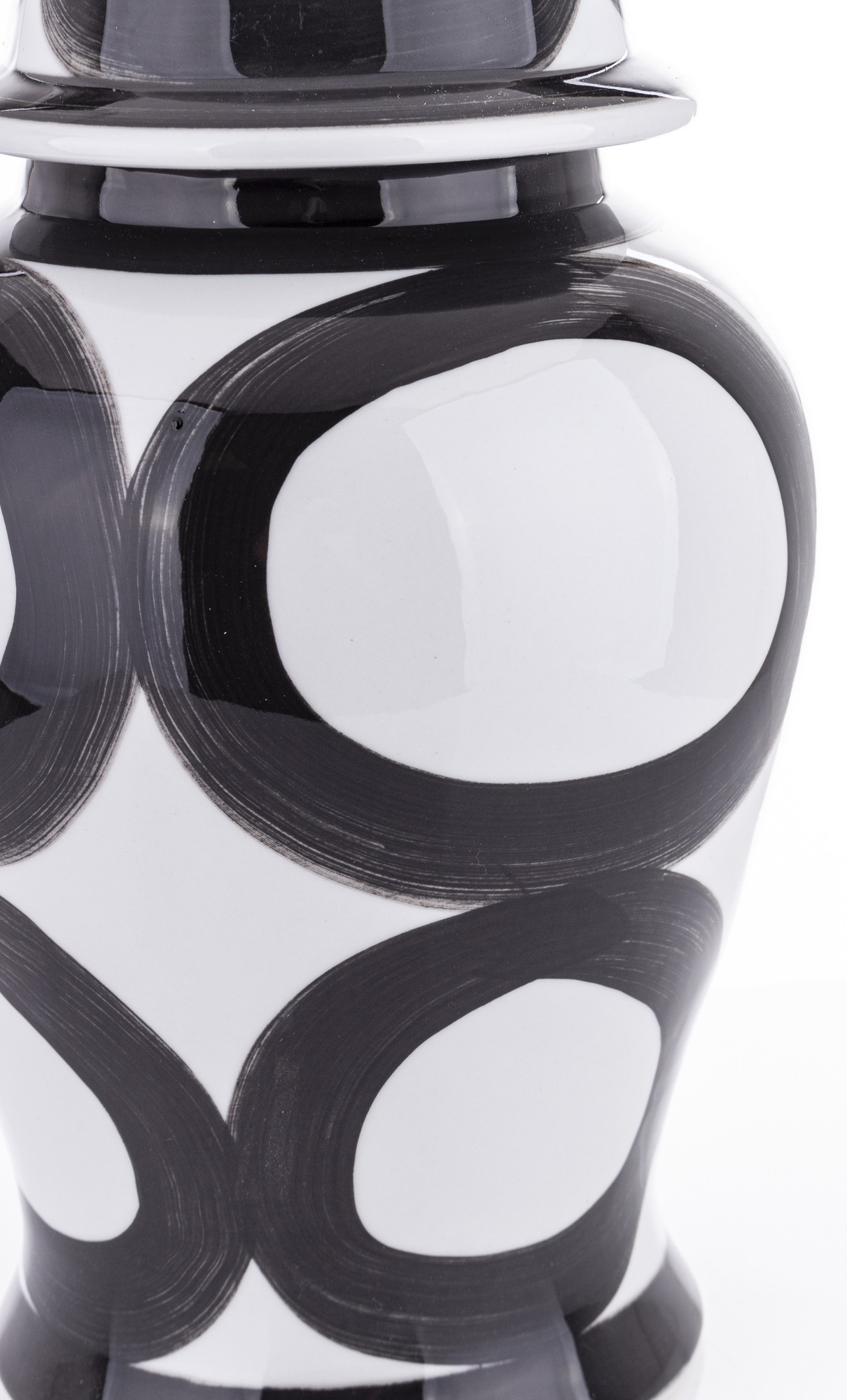 Nasza ceramiczna amfora Okręgi to elegancki pojemnik, który łączy w sobie funkcjonalność z wyjątkowym designem. Została mistrzowsko wykonana z ceramiki, a jej powierzchnia ozdobiona jest klasycznym wzorem czarnych kół. Doskonała do przechowywania różnorodnych przedmiotów, kwiatów lub jako dekoracyjny akcent w każdym wnętrzu