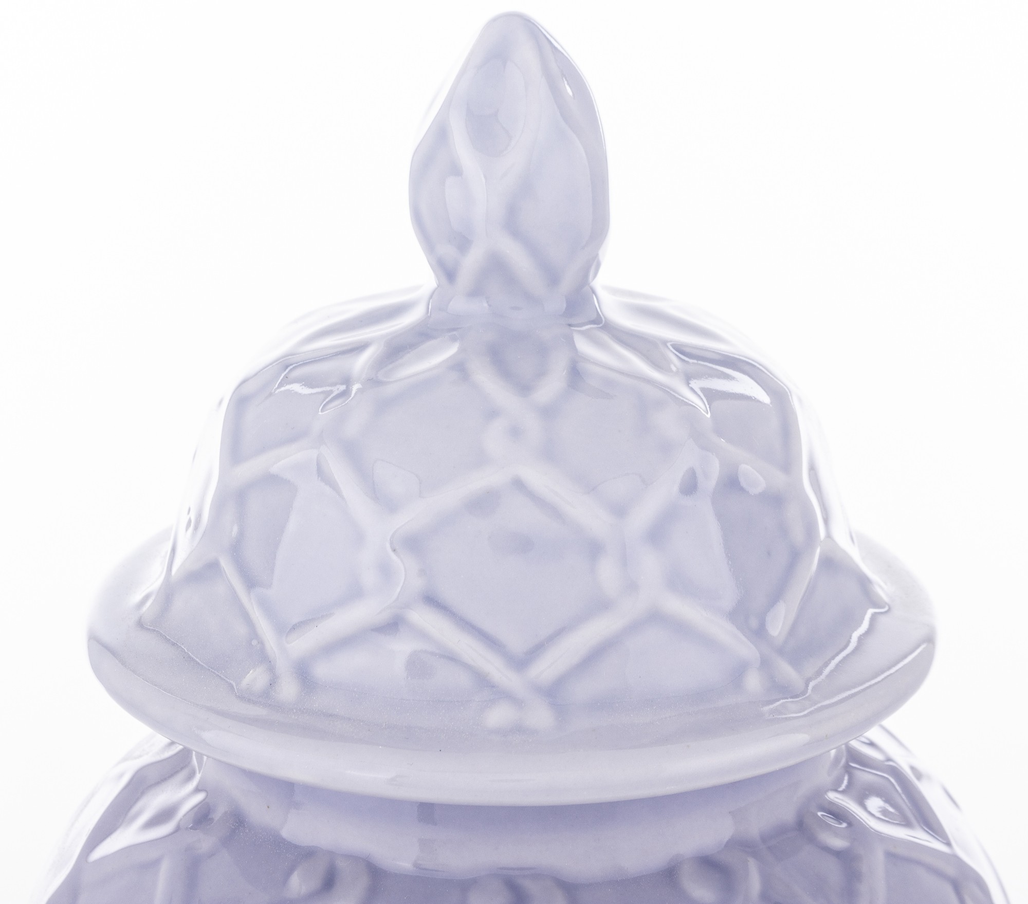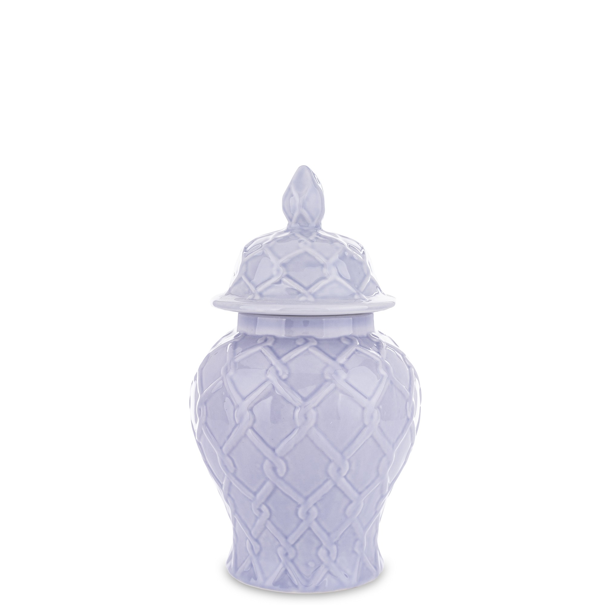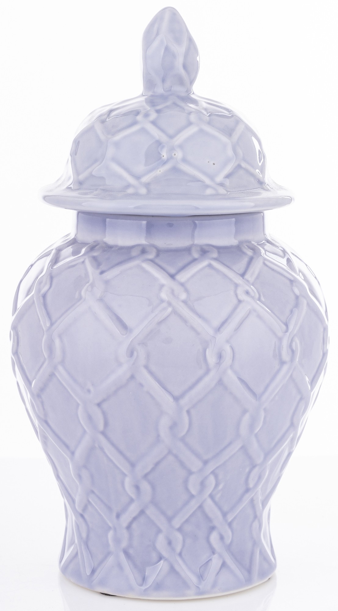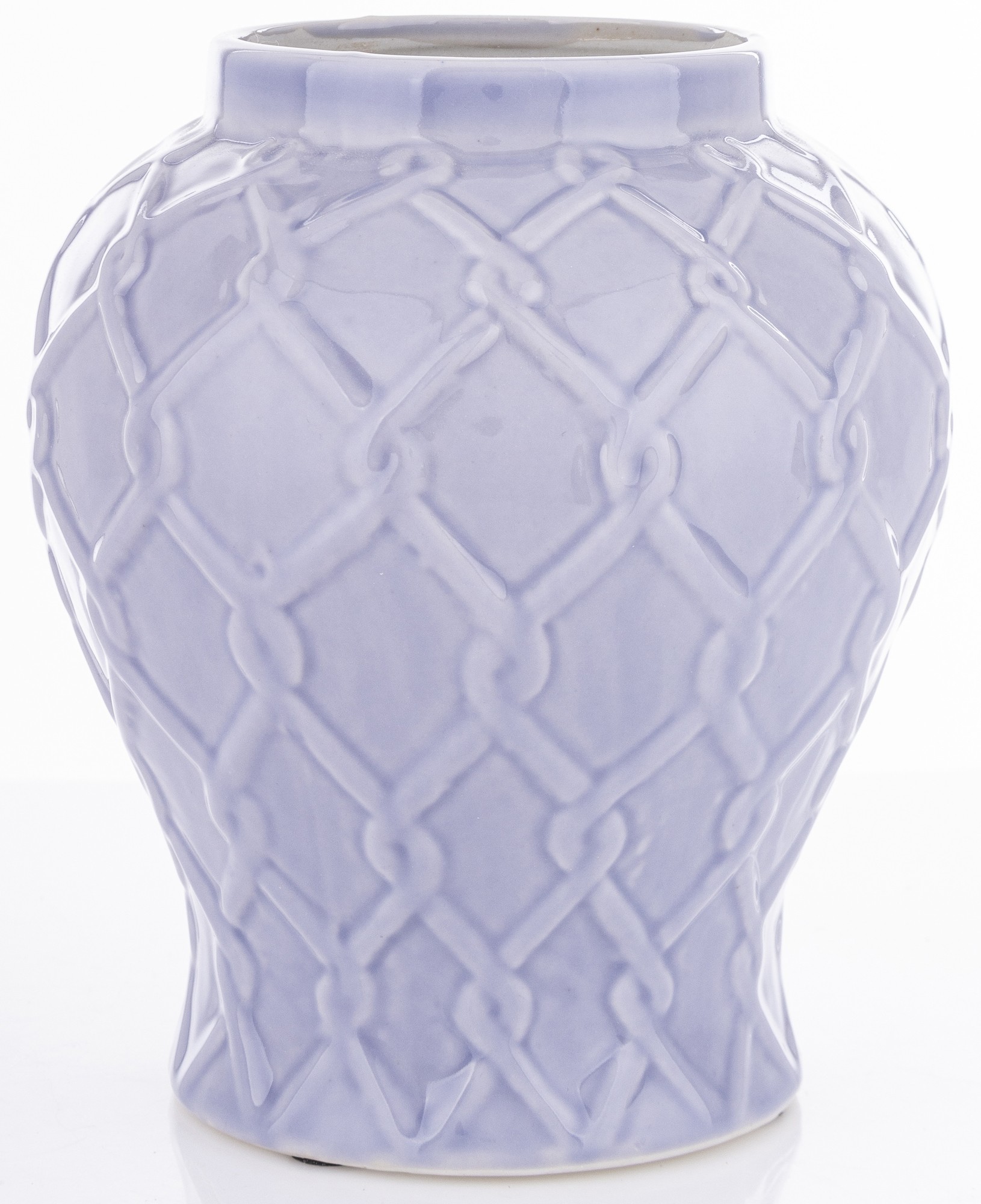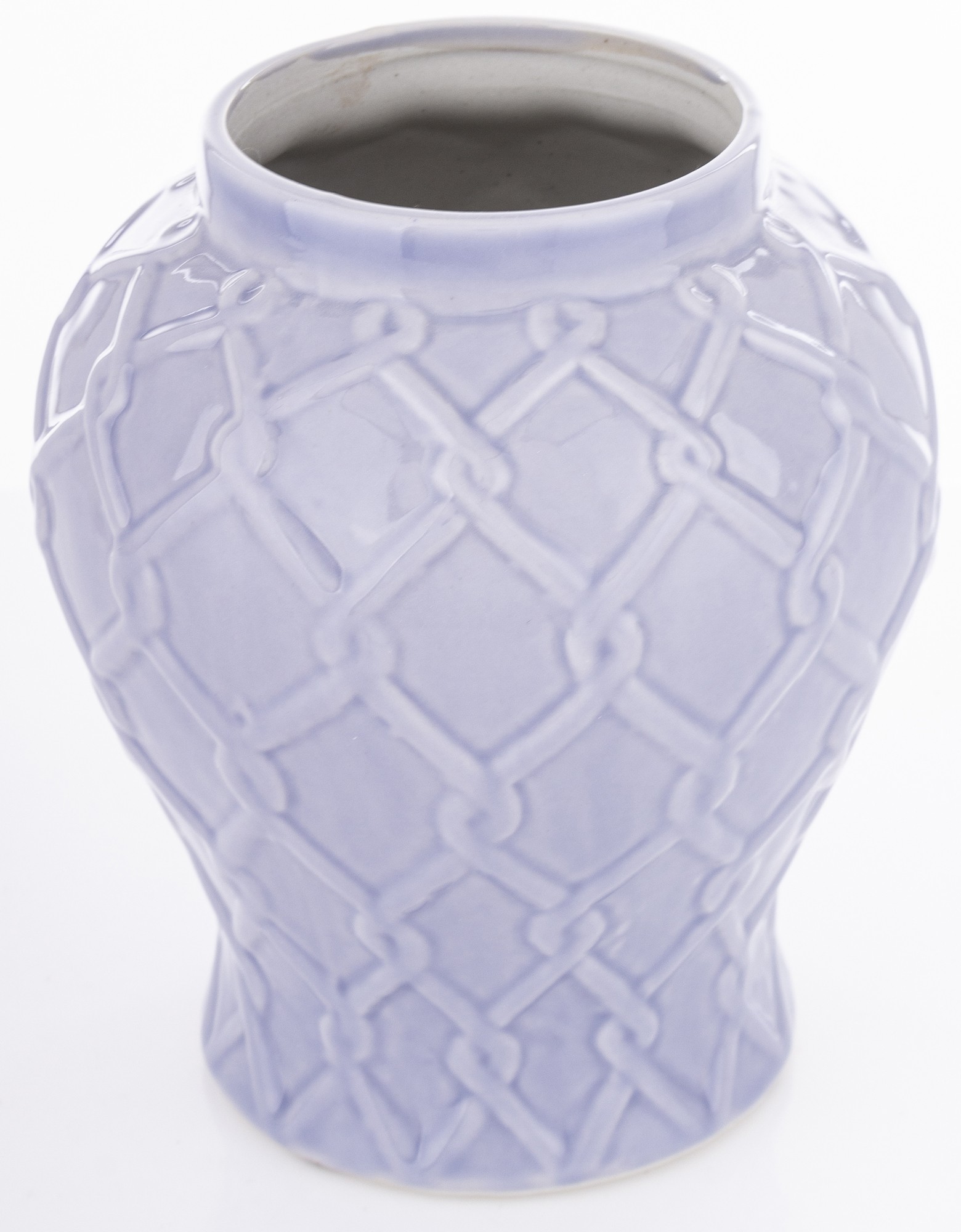 Amfora ceramiczna Plait to elegancki pojemnik wykonany z najwyższej jakości ceramiki w delikatnym bladoniebieskim kolorze, ozdobiony subtelnym, wypukłym wzorem plecionki. Produkt ten emanuje wyrafinowanym stylem i doskonale komponuje się z różnorodnymi aranżacjami wnętrz.