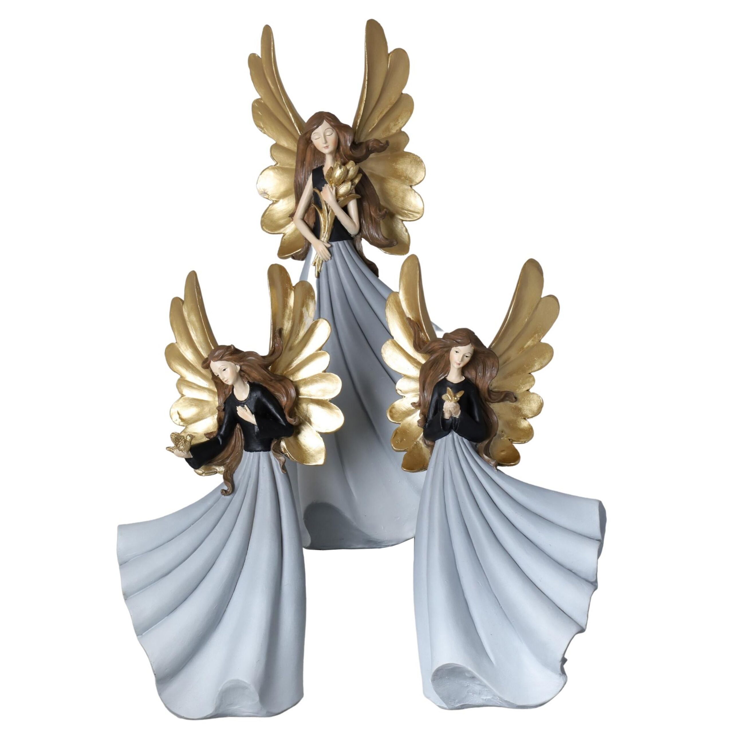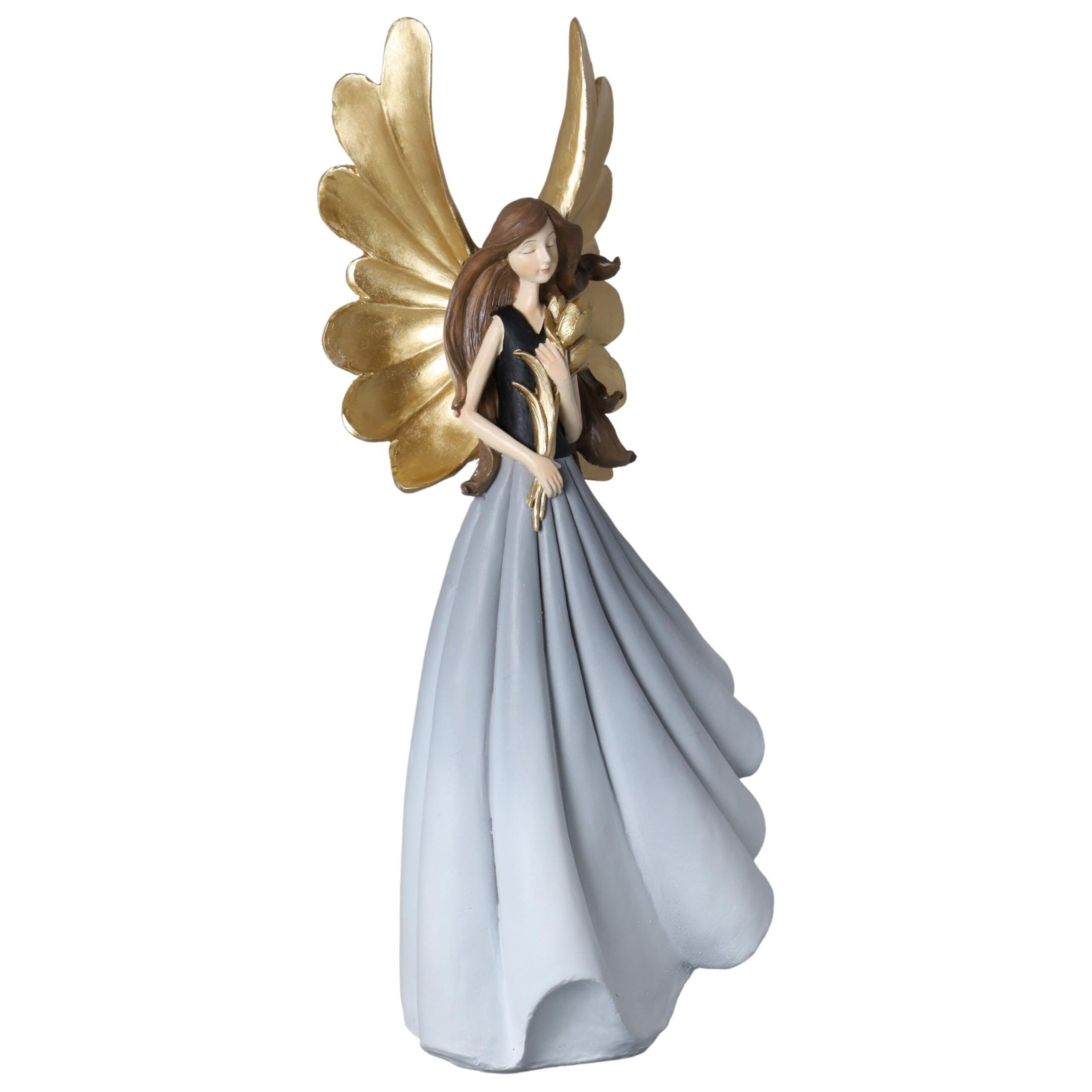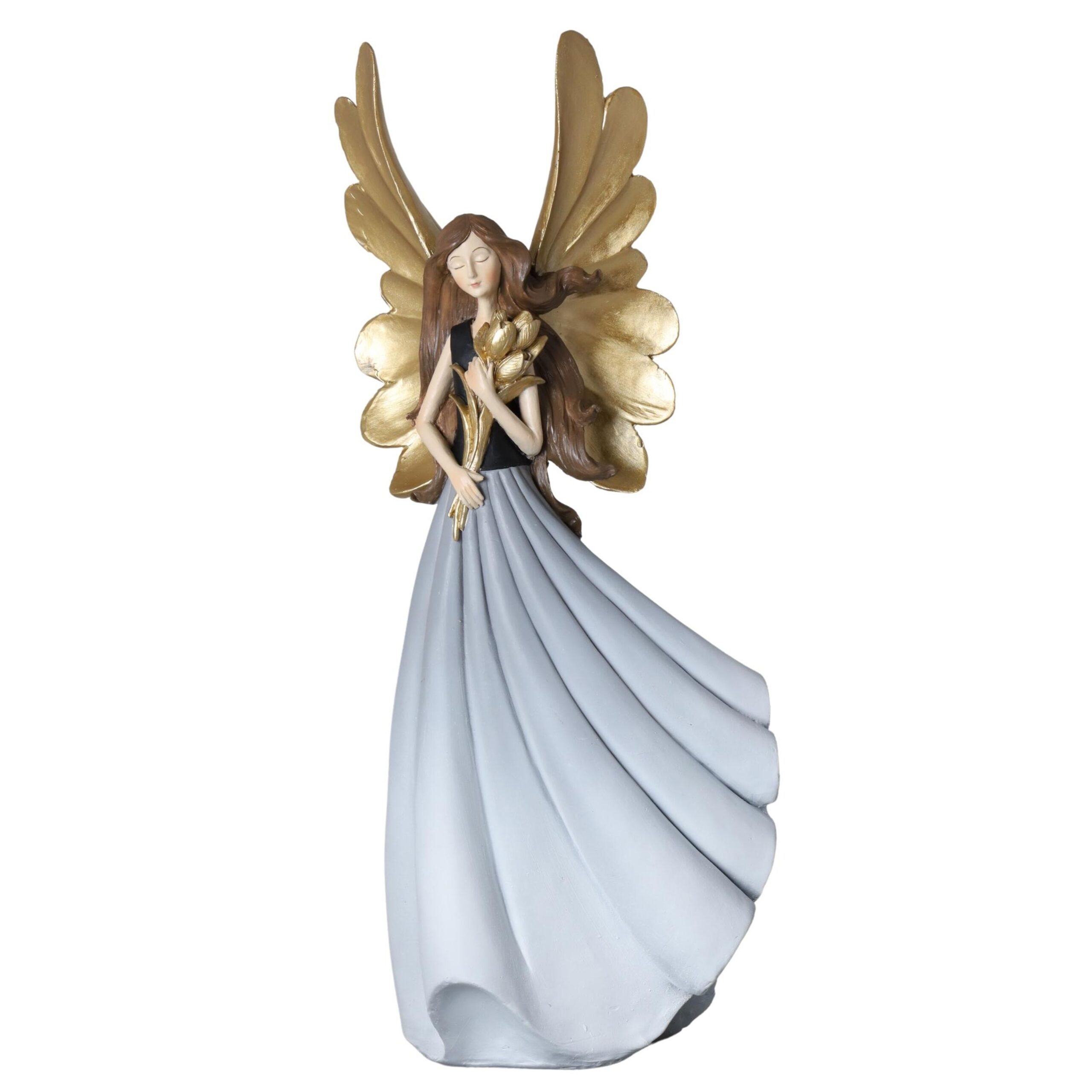 Anioł welurowy czarny ze złotymi skrzydłami duży
