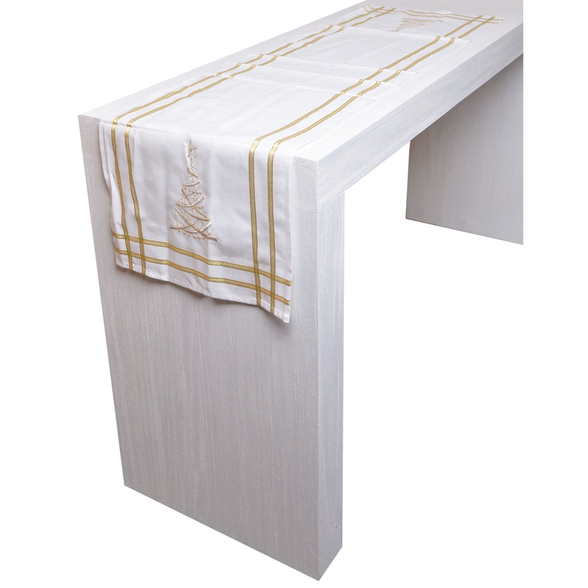 Bieżnik biały ze złotymi choinkami 40x140cm