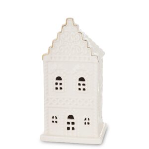 Podsumowując, Domek ceramiczny Merlo na t-light w zieleni ze złotym dachem to doskonałe połączenie funkcjonalności i estetyki. Dodaj świeżości i blasku swojemu domowi, korzystając z tego wyjątkowego domku, który podkreśli wyjątkowość Twojego wnętrza.