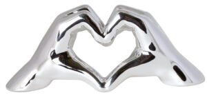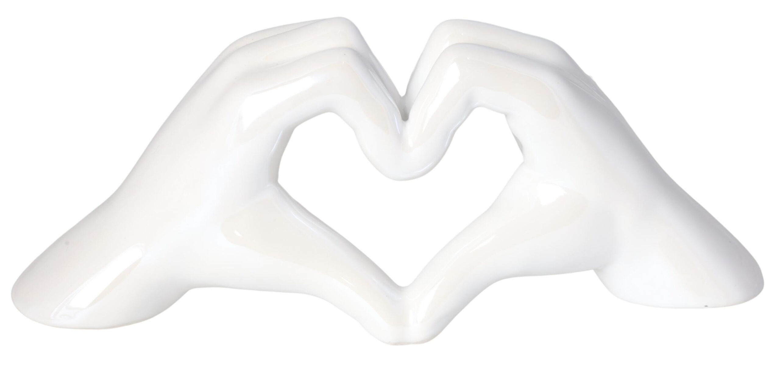 Figurka ceramiczna BUKIK przedstawia dwie dłonie w kolorze białym perłowym, które układają się w kształt serca. Idealna jako dekoracja do wnętrz, symbolizująca miłość i bliskość.