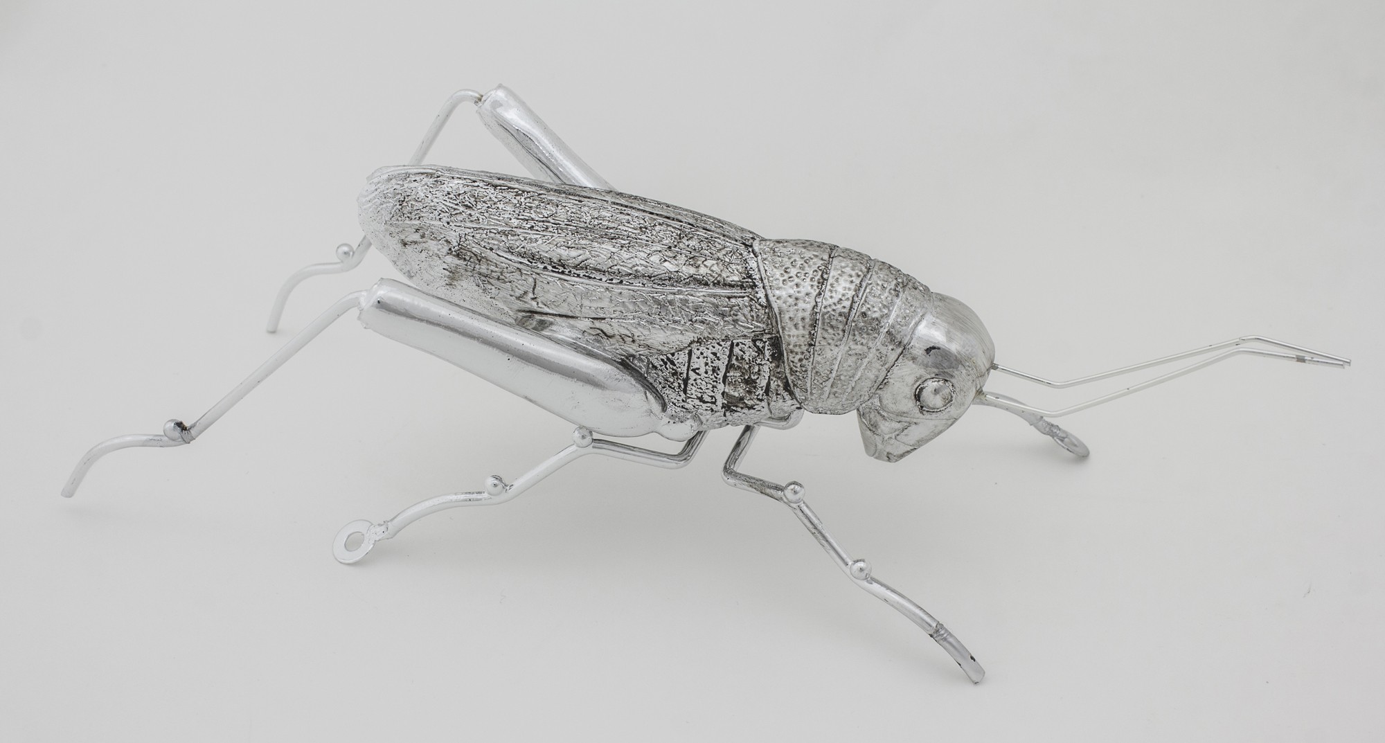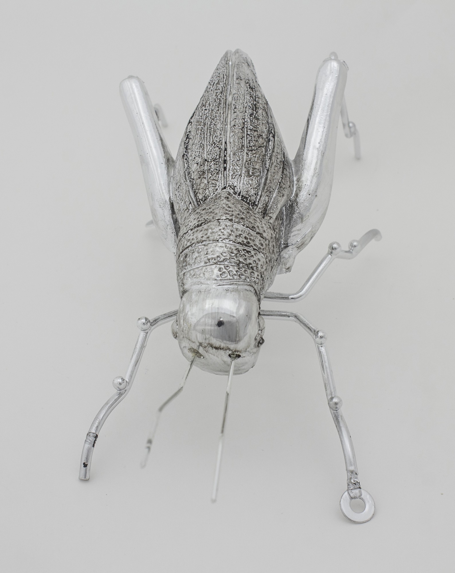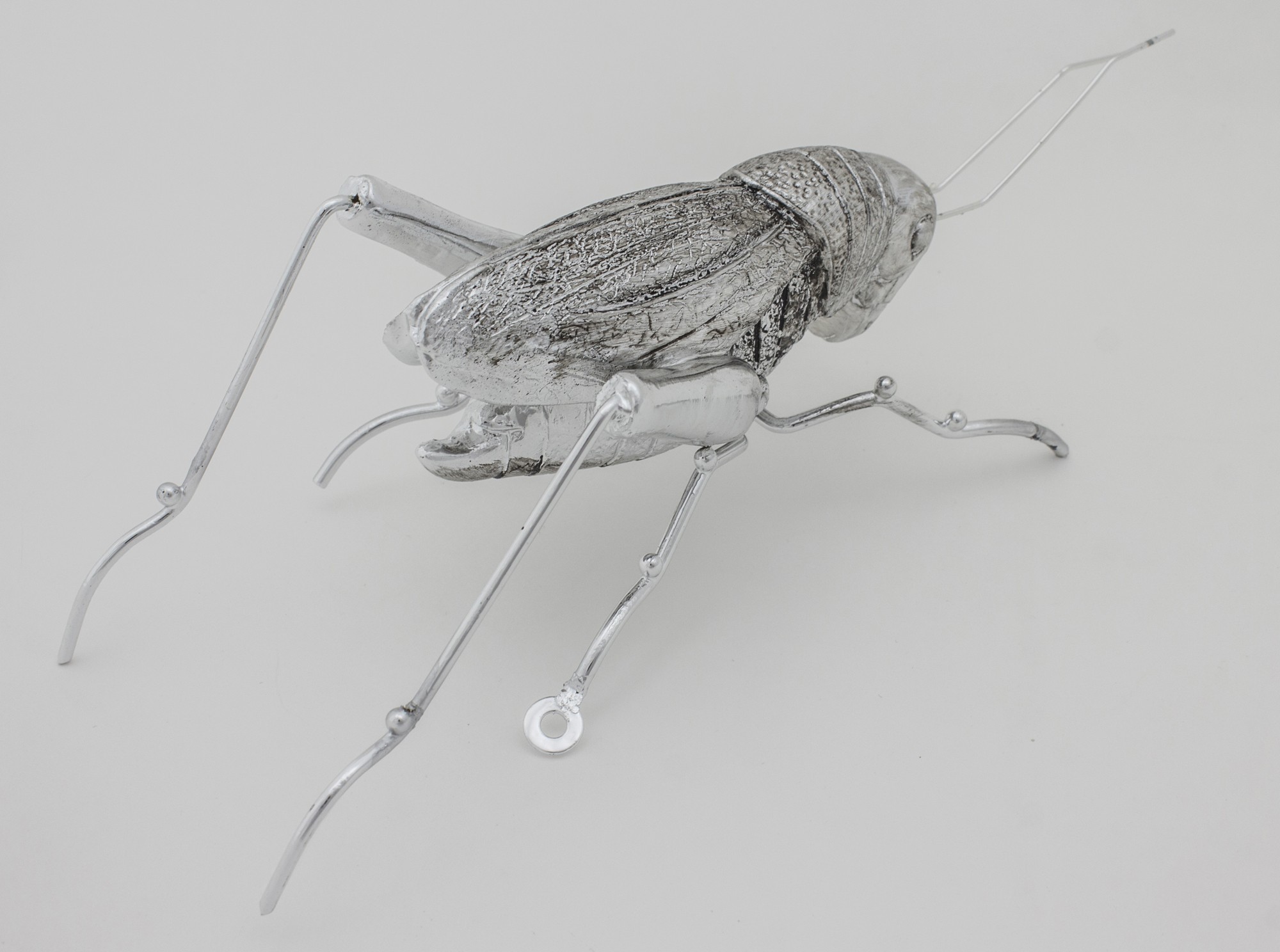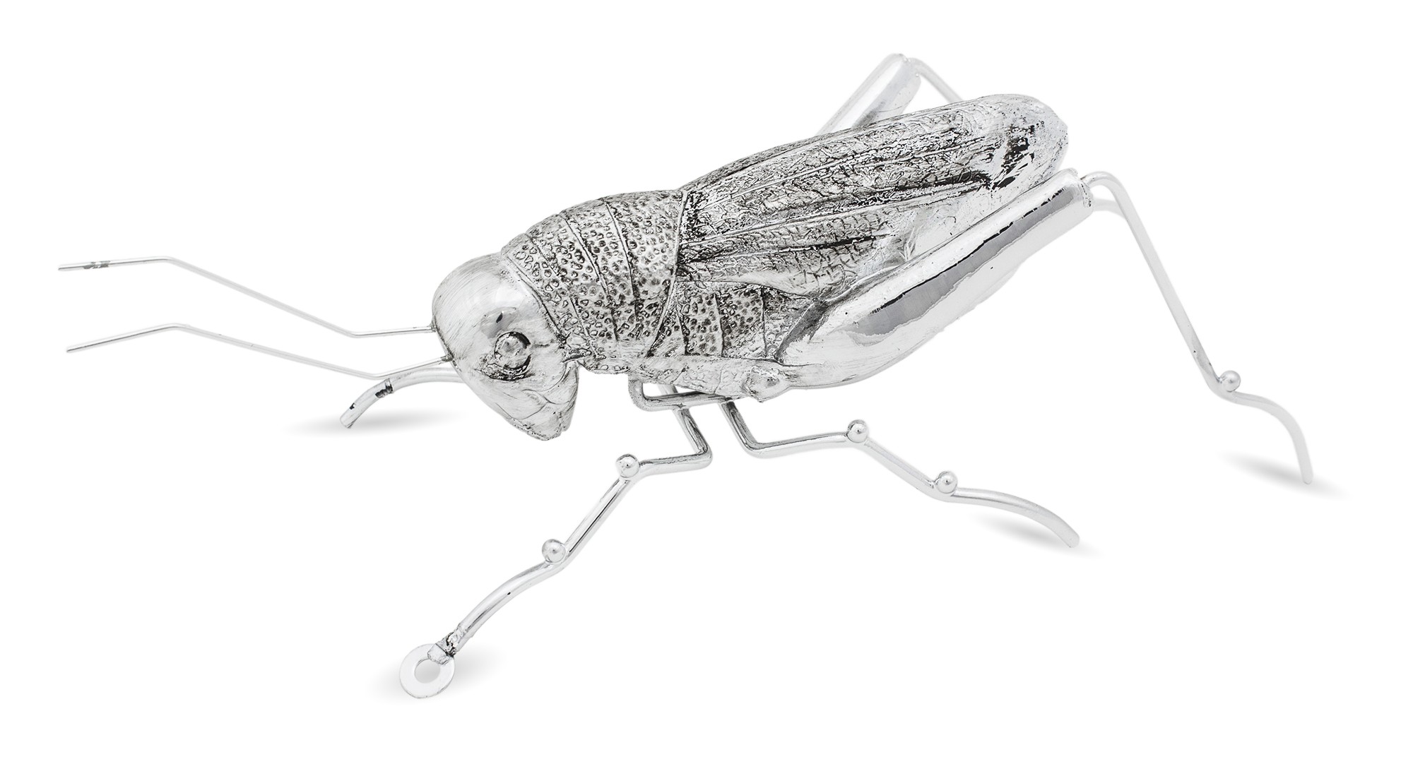Figurka DERIA Świerszcz – ozdoba z tworzywa sztucznego w srebrnym kolorze, starannie wykonana z realistycznymi detalami. Idealna do eleganckich i nowoczesnych wnętrz.