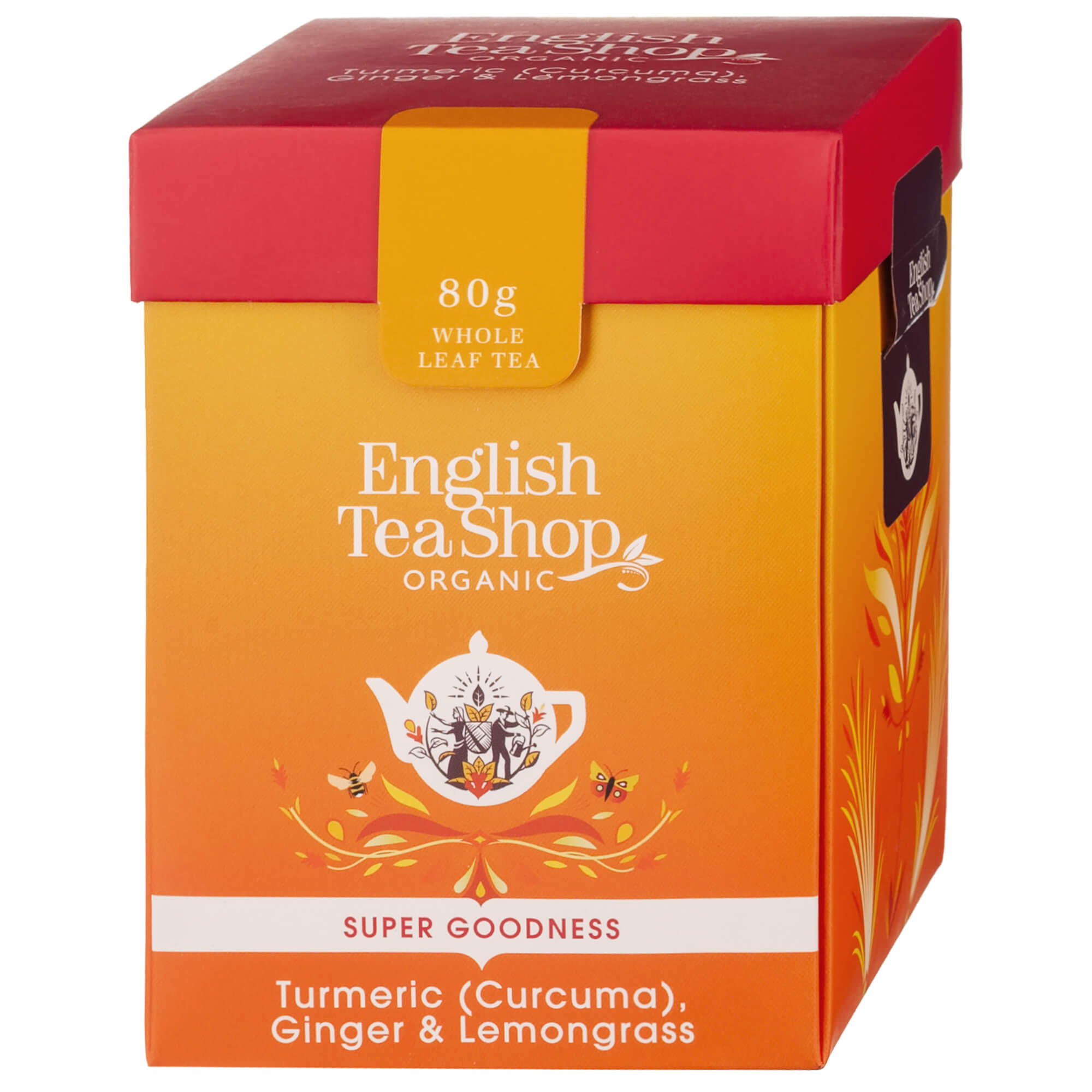Herbata English Tea Shop Organic Super Goodness z kurkumą, imbirem i trawą cytrynową to rozgrzewająca mieszanka o intensywnym smaku i właściwościach prozdrowotnych. Idealna na każdą porę roku.