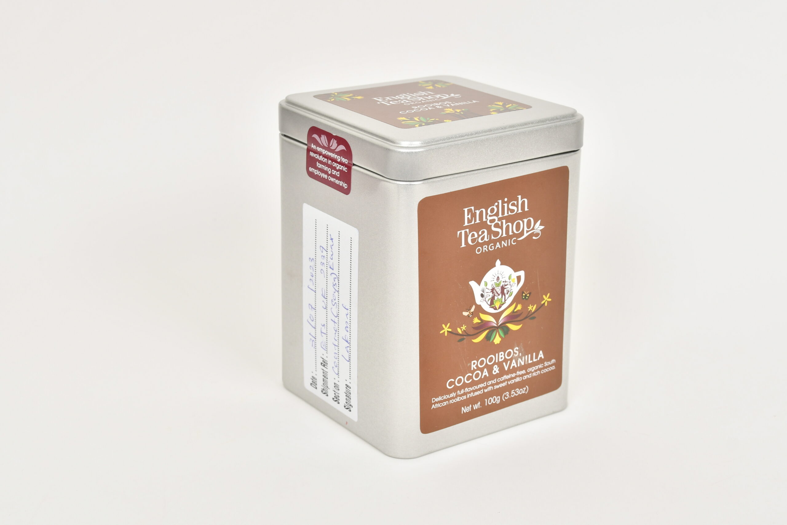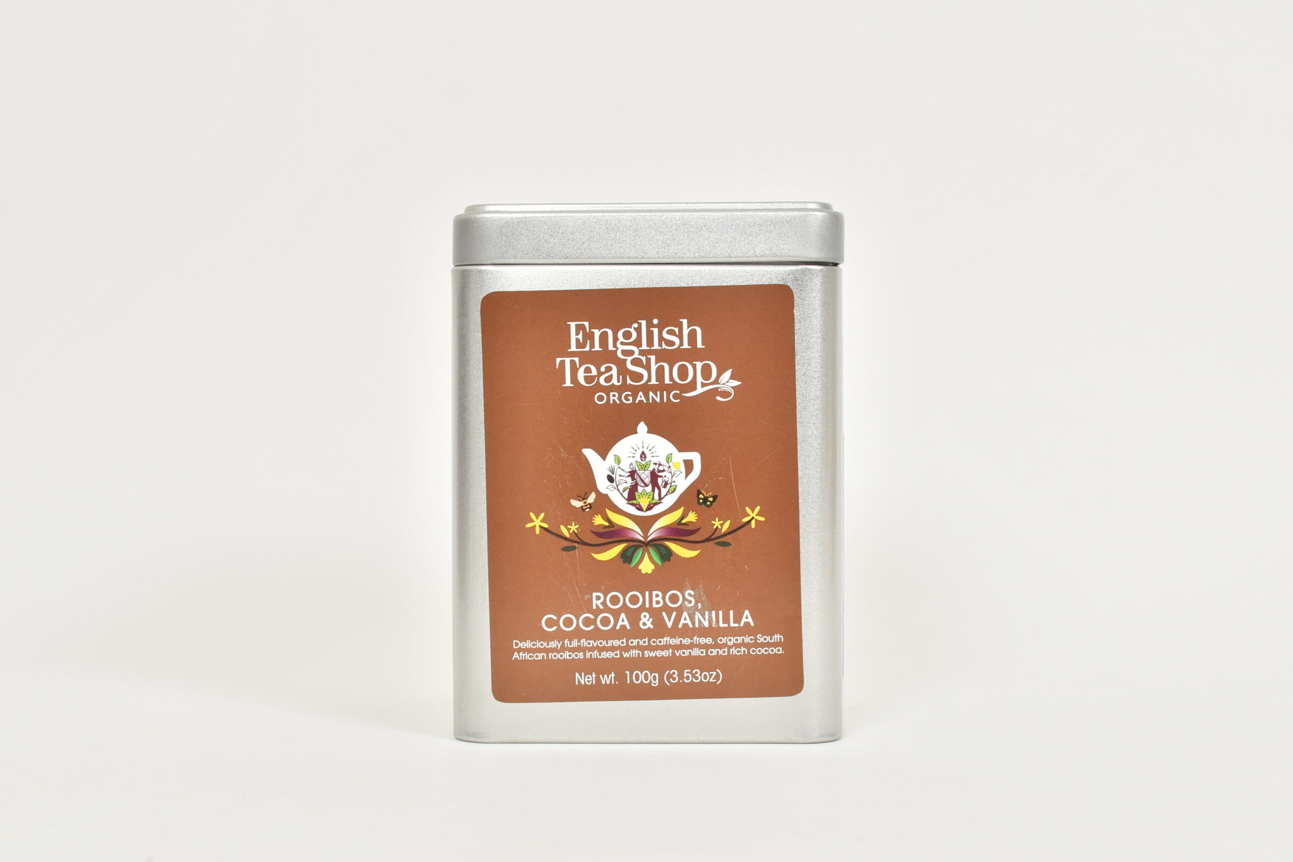 English Tea Shop Chocolate, Rooibos & Vanilla – organiczna mieszanka rooibos z dodatkiem czekolady i wanilii. Idealne połączenie słodyczy i ciepłych nut na chłodne wieczory.