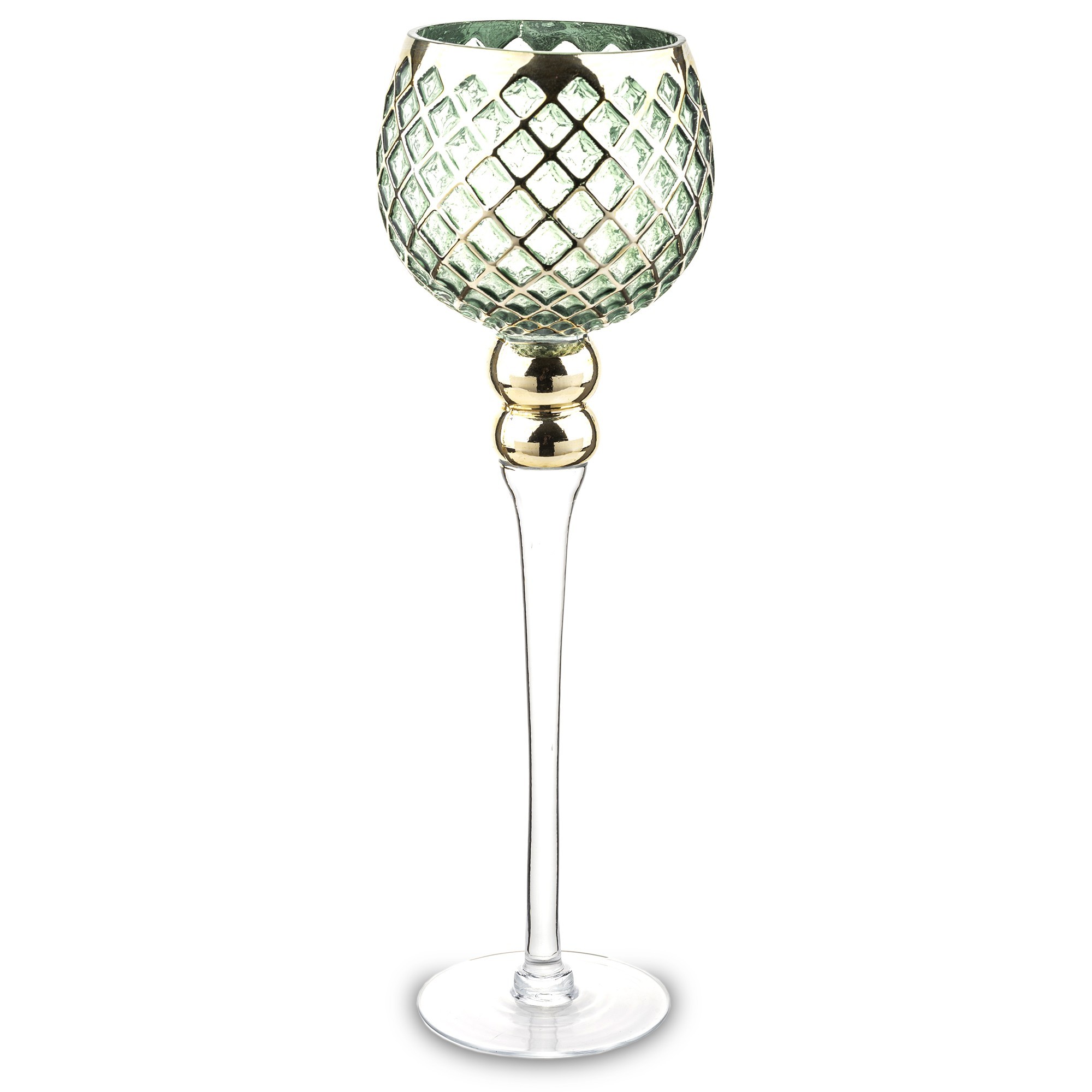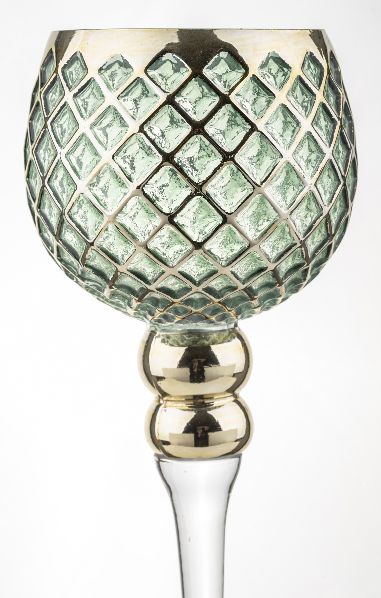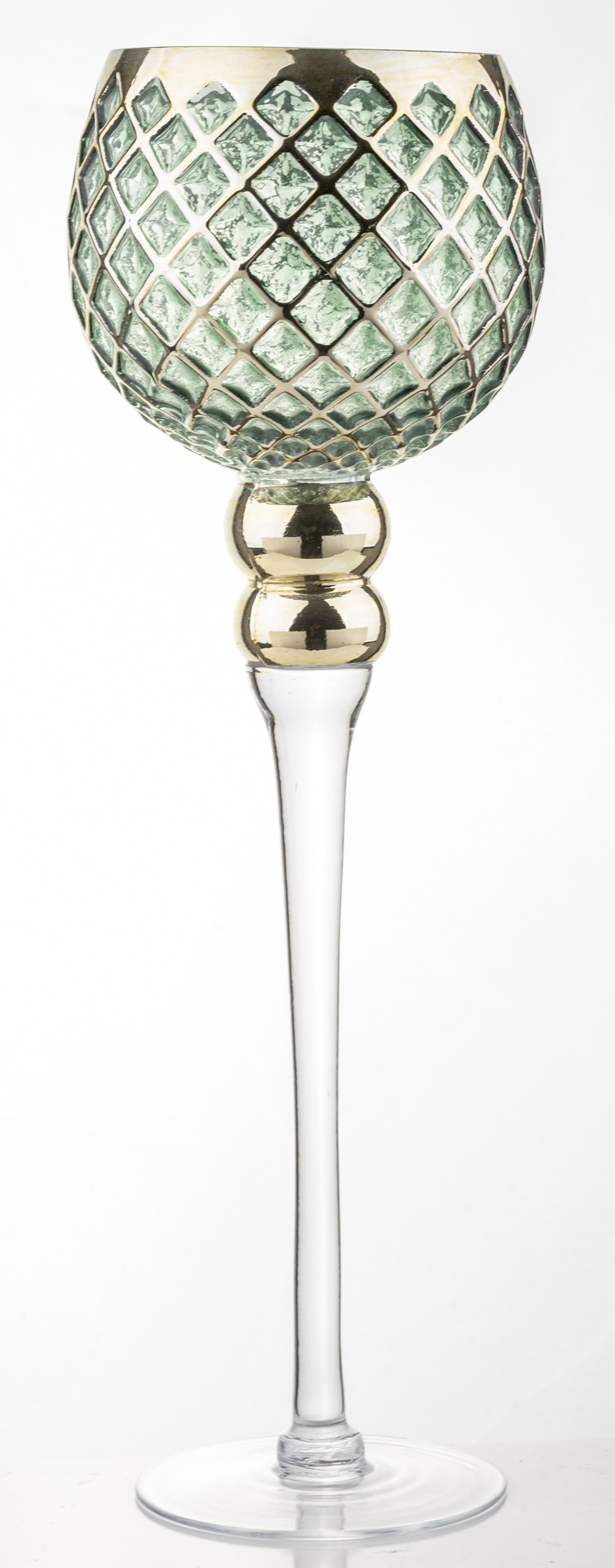Kielich Piselli to wyjątkowy i elegancki świecznik, który zyskuje uznanie zarówno podczas codziennych kolacji, jak i na wyjątkowych przyjęciach czy uroczystościach. Ten starannie wykonany kielich o długości 40 cm zachwyca wyjątkowym połączeniem szlachetnego zielonego szkła i subtelnych złotych akcentów.