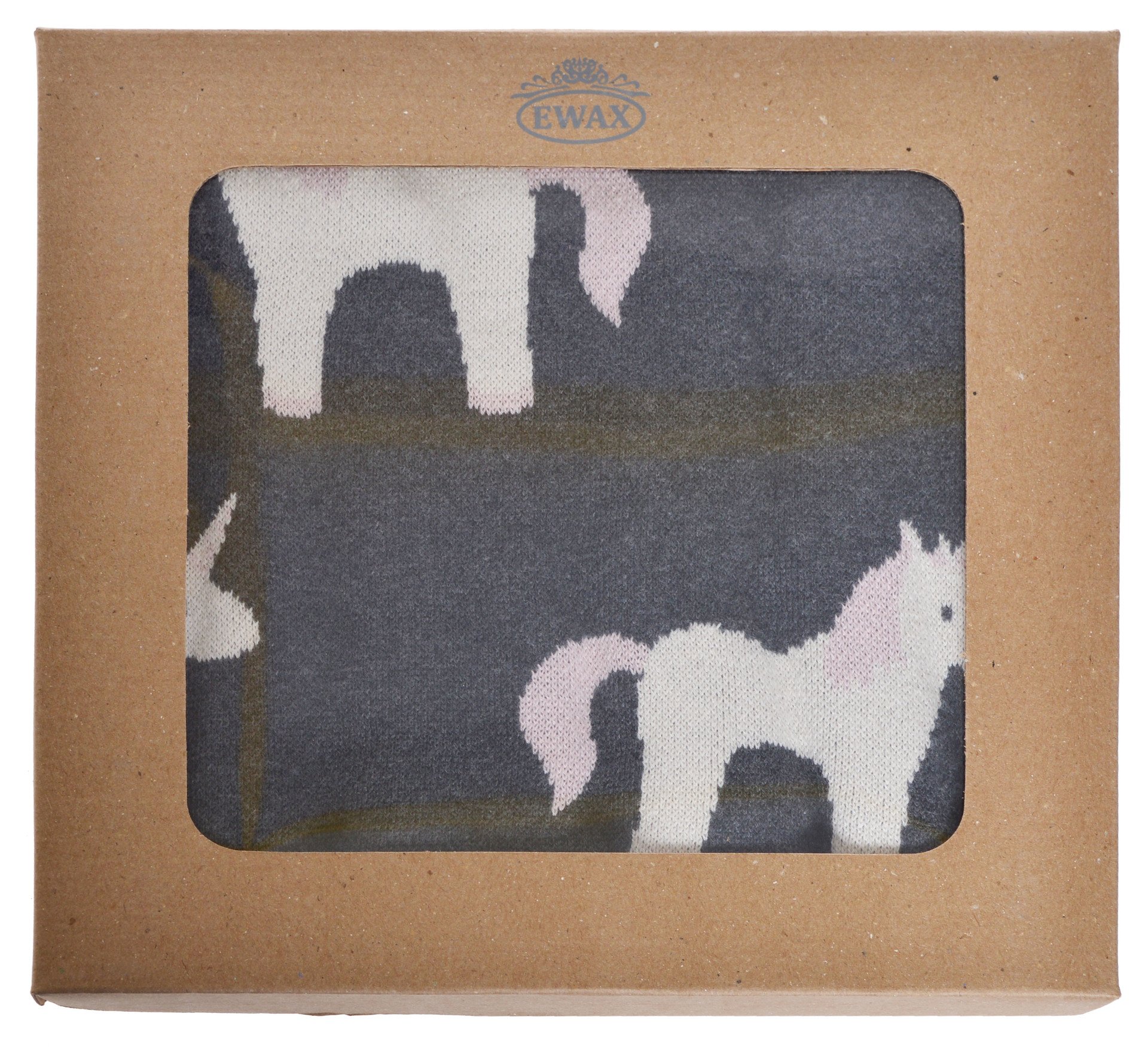 Koc dziecięcy BERING w jednorożce wykonany w 100% z bawełny. Idealny do otulenia malucha, zapewniając mu ciepło i komfort. Wzór z uroczymi jednorożcami na szarym tle dodaje mu wyjątkowego uroku.