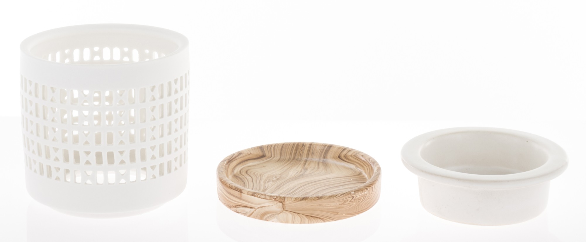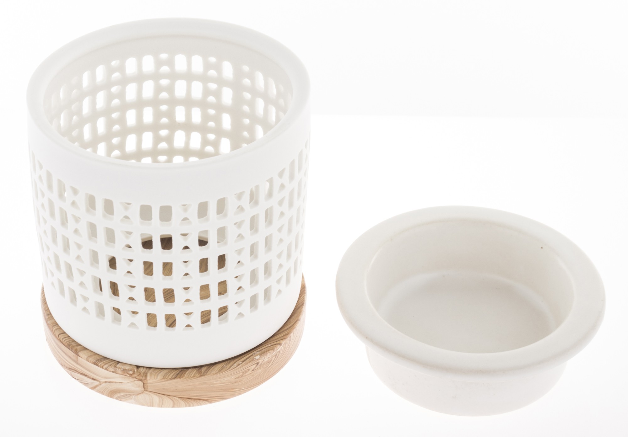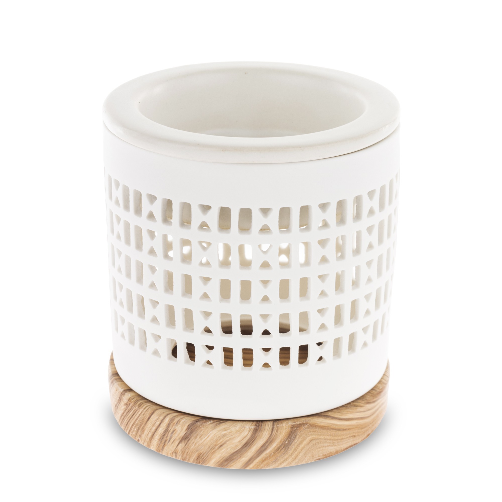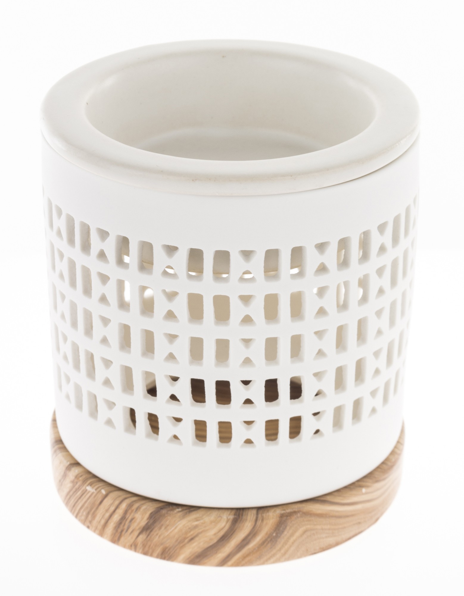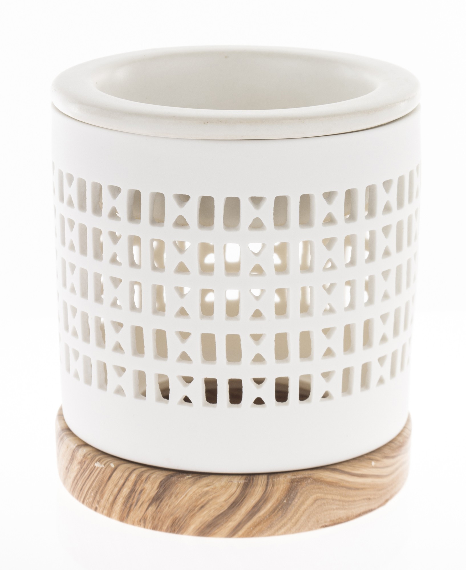 Dodaj stylu swojemu wnętrzu z ceramicznym kominkiem zapachowym w białym kolorze. Jego ażurowa powierzchnia z wydrążonymi małymi okienkami w połączeniu z drewnianą podstawką prezentuje się bardzo elegancko i uniwersalnie. Taki kominek będzie nie tylko ozdobą mieszkania, ale przede wszystkim sprawdzi się do aromaterapii.