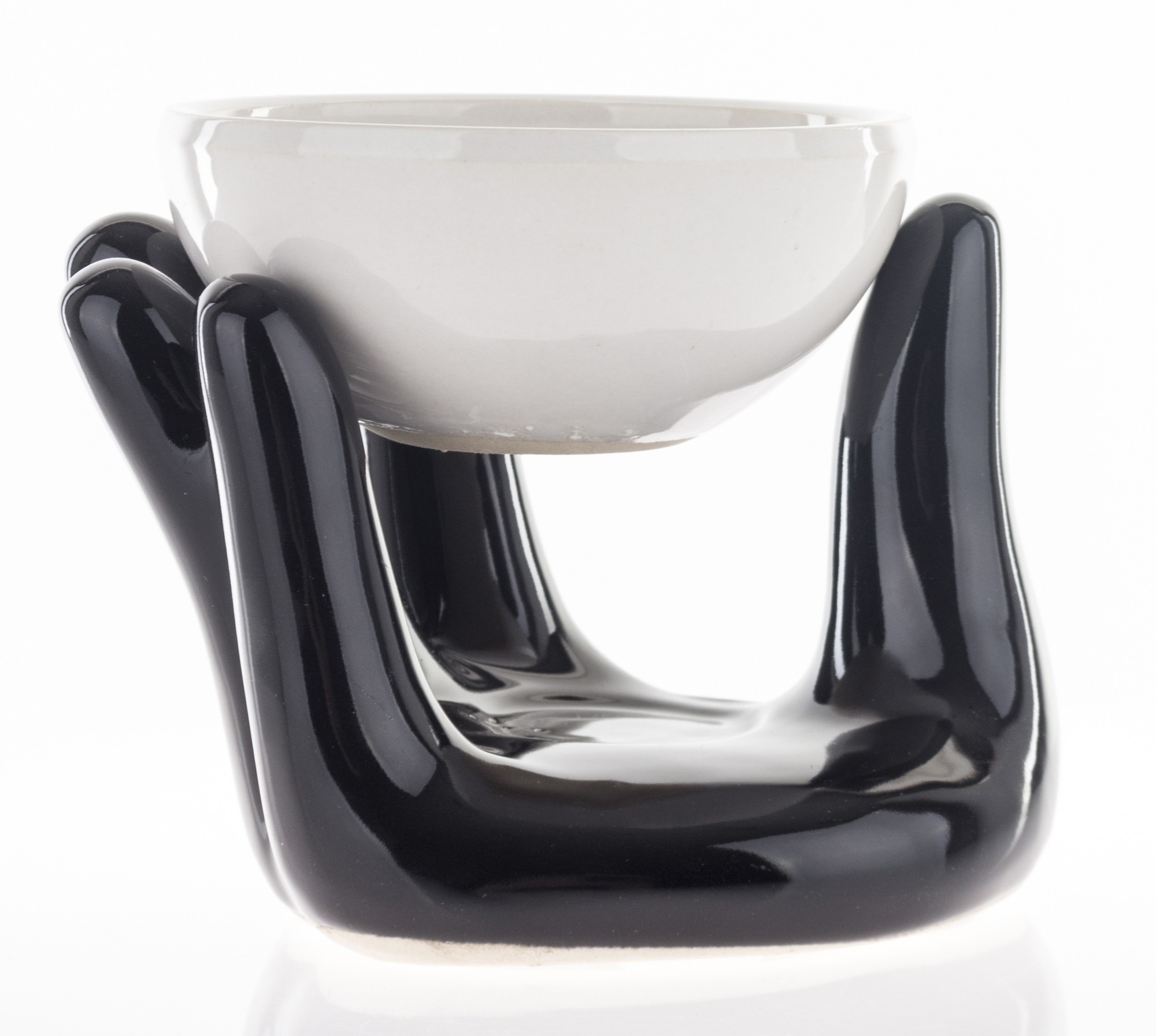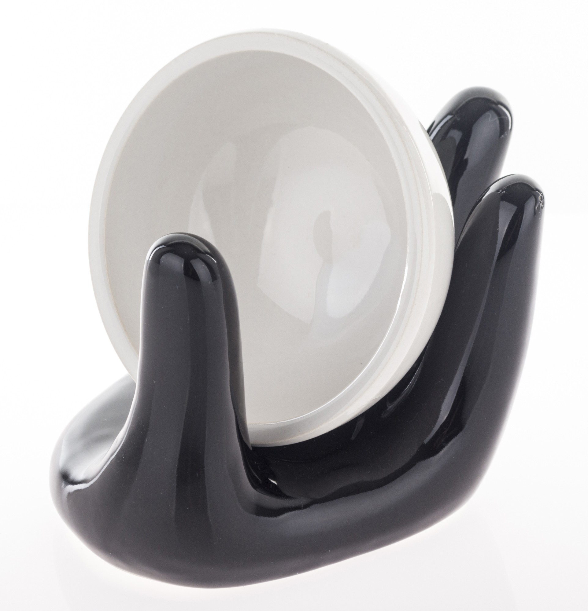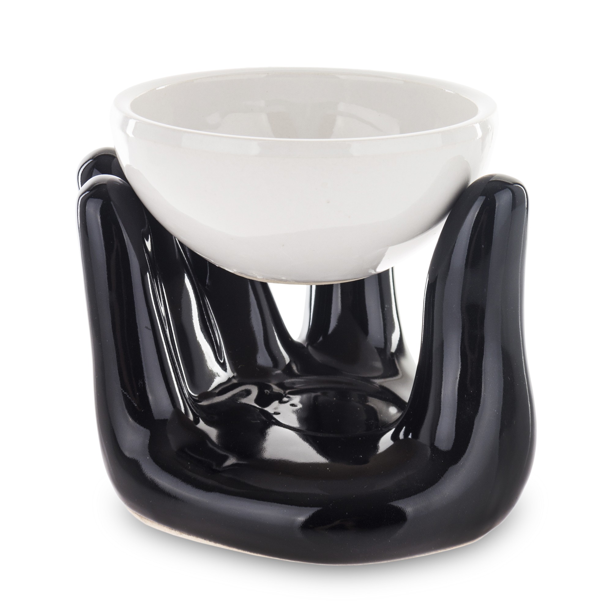 Kominek zapachowy Mano ceramiczny czarno-biały to wyjątkowy element dekoracyjny, który wnosi do Twojego wnętrza zarówno elegancję, jak i relaksujący aromat. Wykonany z ceramiki, kominek ten przedstawia pięknie ukształtowaną dłoń w kolorze czarnym, trzymającą pojemnik na olejek lub świeczkę zapachową w intensywnym odcieniu białym. Ten kominek łączy w sobie funkcję zapachową i estetyczną. Po umieszczeniu olejku zapachowego lub zapaleniu świeczki typu tealight w pojemniku, kominek zaczyna rozprzestrzeniać relaksujący aromat, który tworzy atmosferę spokoju i odprężenia. To idealne rozwiązanie po długim dniu, kiedy chcesz stworzyć sobie chwilę relaksu.