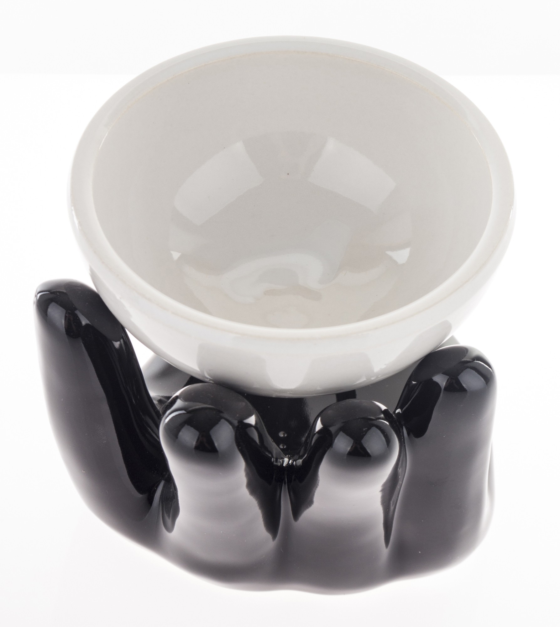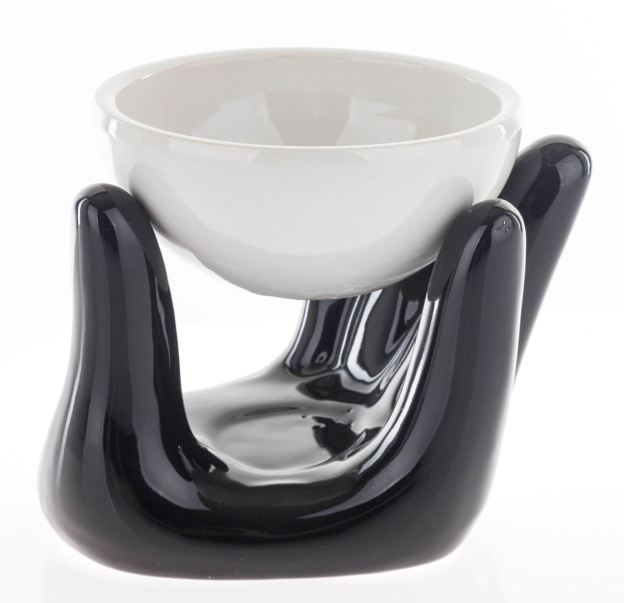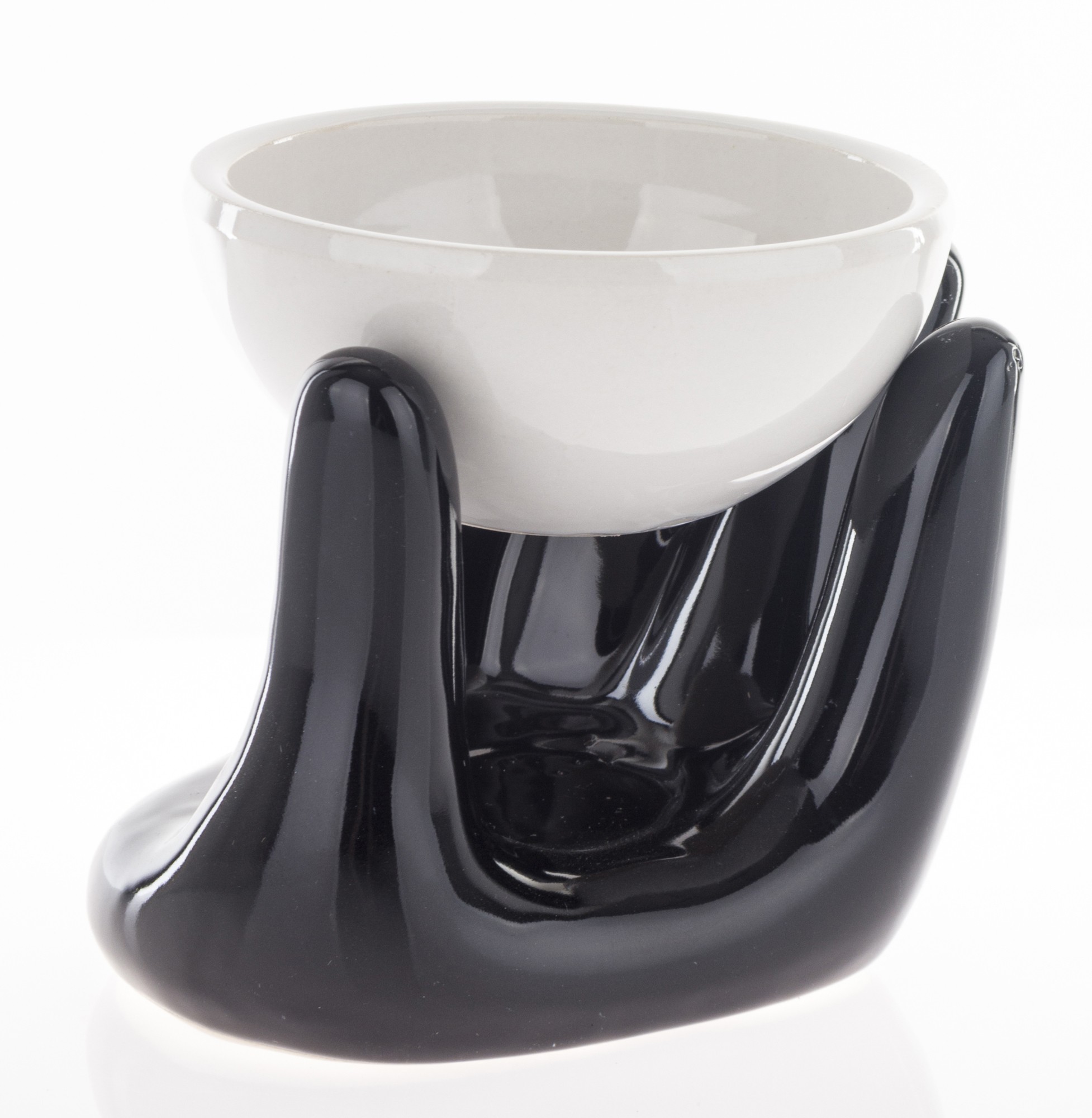Kominek zapachowy Mano ceramiczny czarno-biały to wyjątkowy element dekoracyjny, który wnosi do Twojego wnętrza zarówno elegancję, jak i relaksujący aromat. Wykonany z ceramiki, kominek ten przedstawia pięknie ukształtowaną dłoń w kolorze czarnym, trzymającą pojemnik na olejek lub świeczkę zapachową w intensywnym odcieniu białym. Ten kominek łączy w sobie funkcję zapachową i estetyczną. Po umieszczeniu olejku zapachowego lub zapaleniu świeczki typu tealight w pojemniku, kominek zaczyna rozprzestrzeniać relaksujący aromat, który tworzy atmosferę spokoju i odprężenia. To idealne rozwiązanie po długim dniu, kiedy chcesz stworzyć sobie chwilę relaksu.
