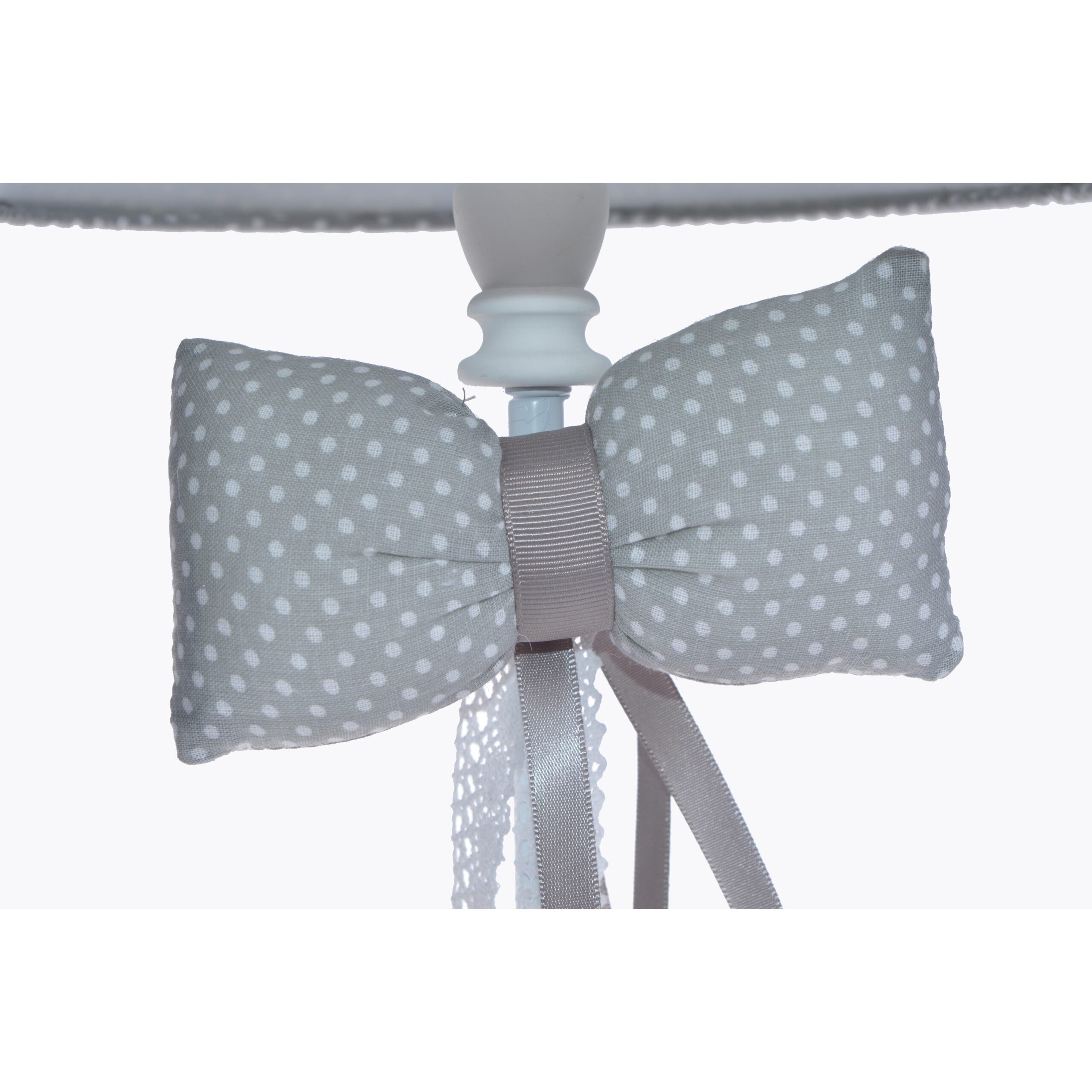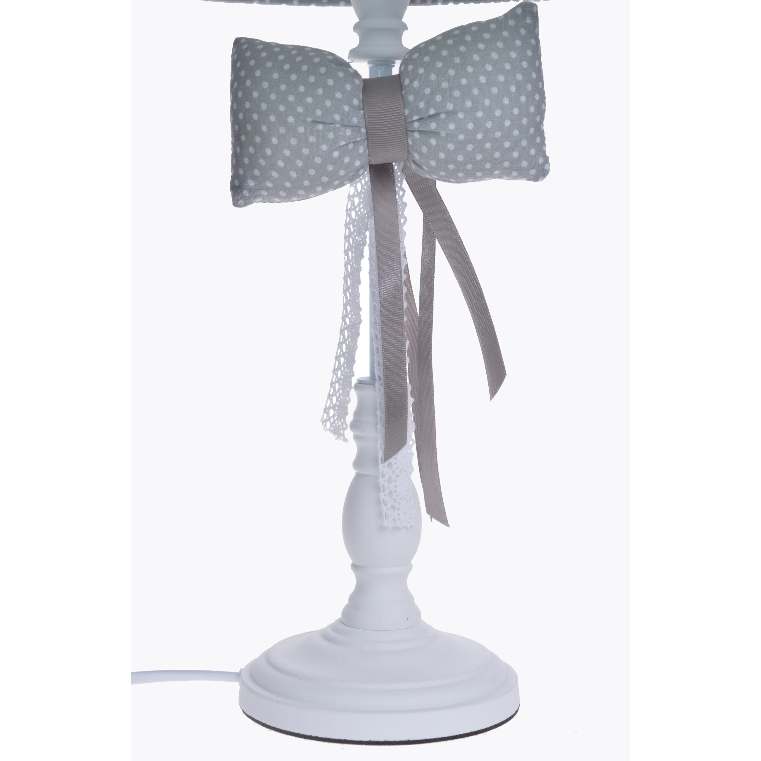 Lampa w kolorze białym z ozdobną kokardą na abażurze w kropki to subtelny dodatek, który wnosi do wnętrza delikatność i urok. Jej abażur w kropki z uroczą kokardą tworzy lekką, przyjemną kompozycję. Ta lampa nie tylko oświetla pomieszczenie, ale również dodaje mu nutki elegancji i uroku, będąc zarówno funkcjonalną, jak i dekoracyjną ozdobą.