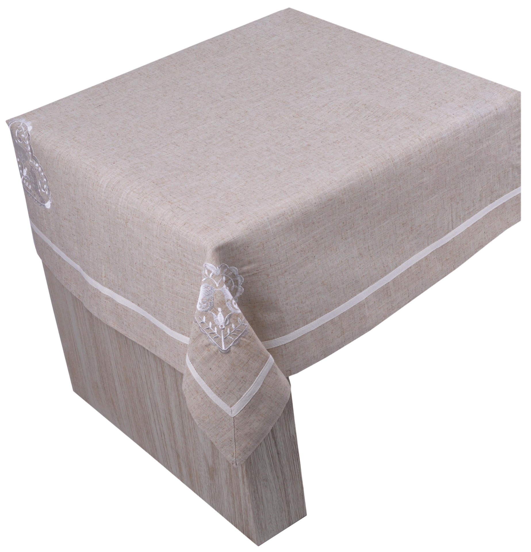 Obrus beżowy z haftem ptaszki 140x220cm DUBLI
