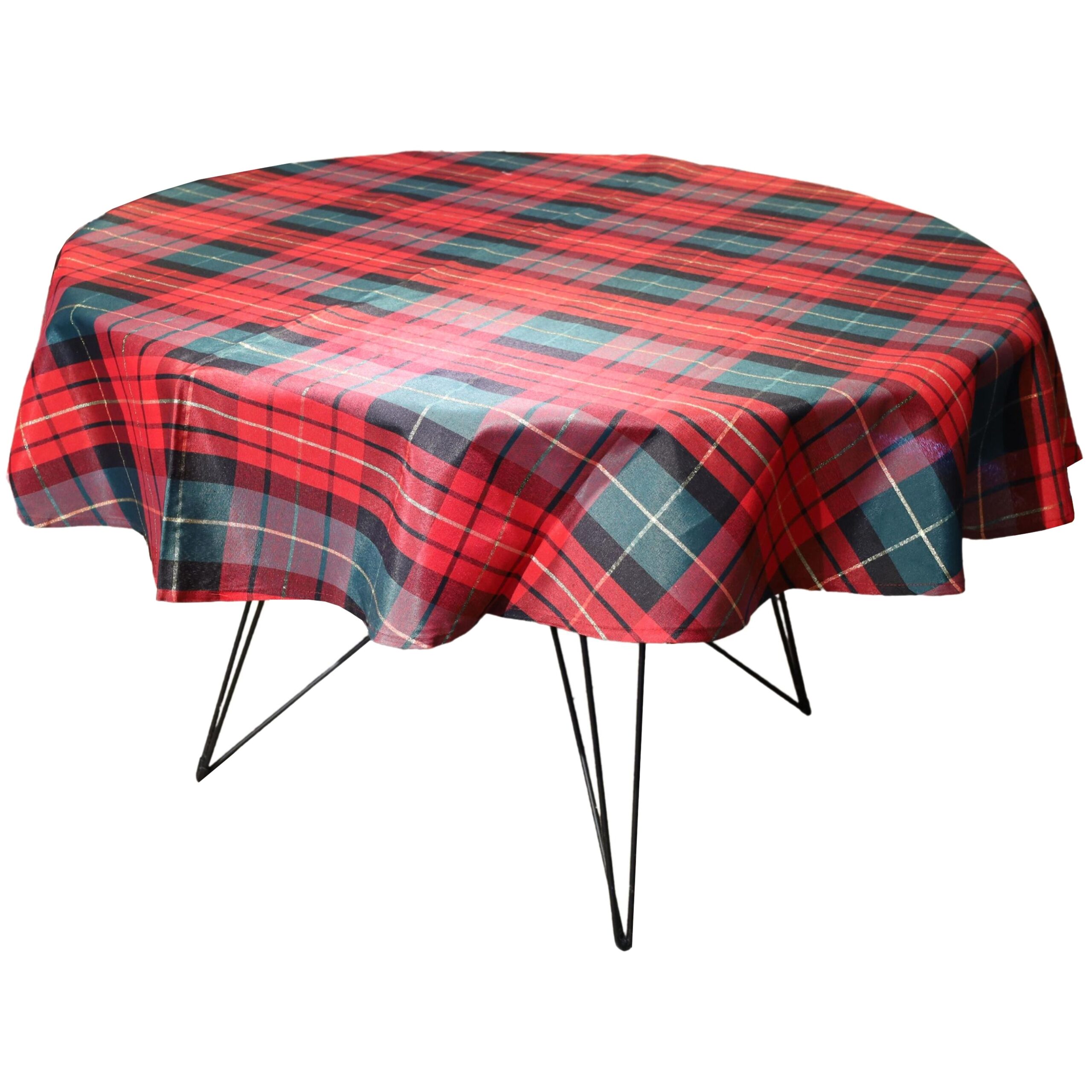 Oferujemy okrągły obrus w kracie o średnicy 180 cm. Ten elegancki obrus to doskonałe połączenie stylu i funkcjonalności, które doda wyjątkowego charakteru Twojemu stołowi.