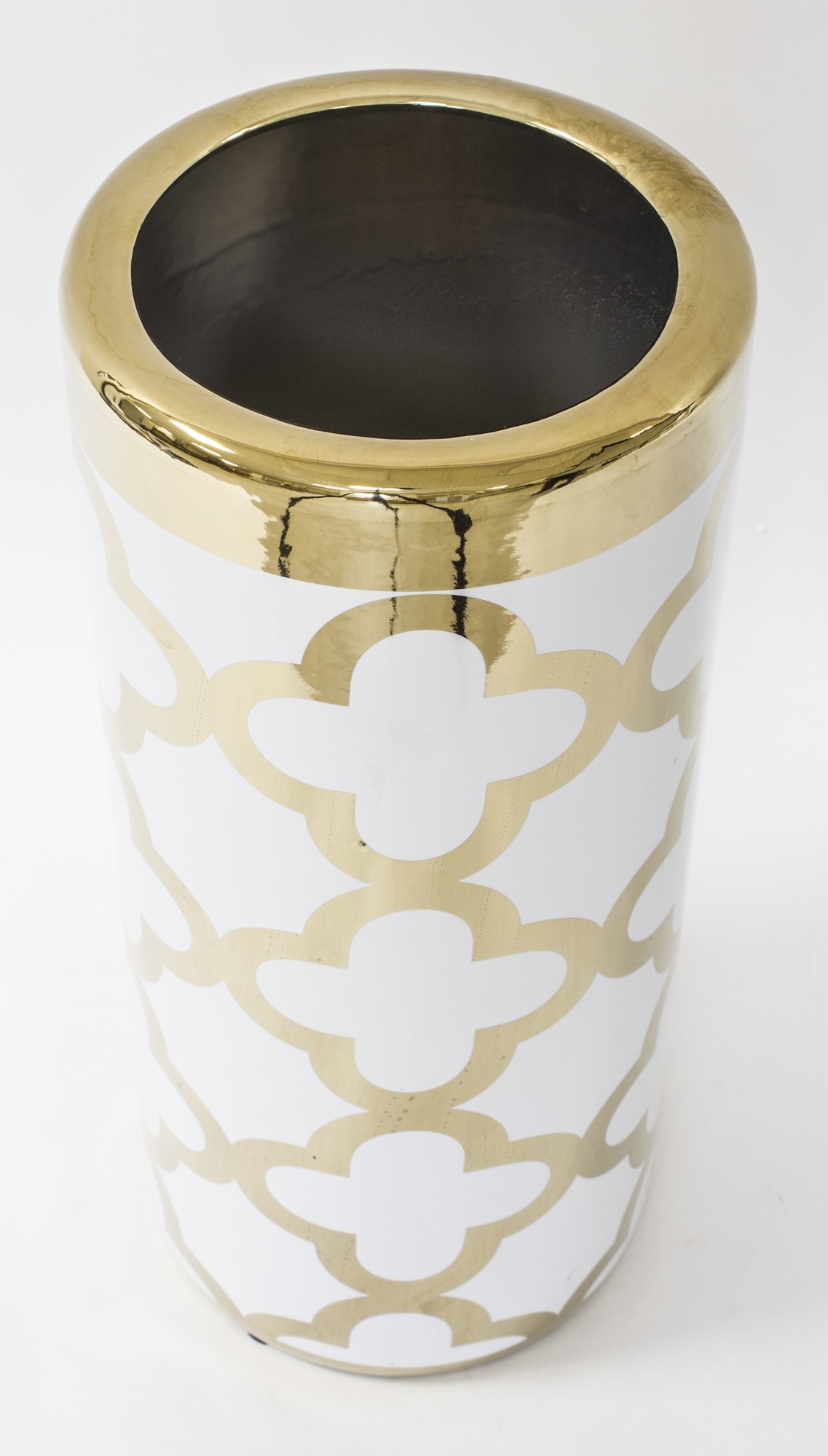 Przedstawiamy nasz stojak na parasole Złota Elegancja, który łączy w sobie funkcjonalność i wyrafinowany design. Wykonany z wysokiej jakości ceramiki, zachwyca subtelnością złotych wzorów na białym tle, dodając elegancji każdemu wnętrzu. Solidna konstrukcja gwarantuje stabilność, zapewniając bezpieczne przechowywanie parasoli. Dzięki tworzywie wysokiej jakości stojak pozostaje w doskonałym stanie przez wiele lat użytkowania. Ożyw swoje wnętrze dodatkowym blaskiem i stylem dzięki Parasolnikowi Złota Elegancja, który nie tylko spełni swoje praktyczne zadanie, ale także stanie się wyjątkowym elementem dekoracyjnym Twojego pomieszczenia.