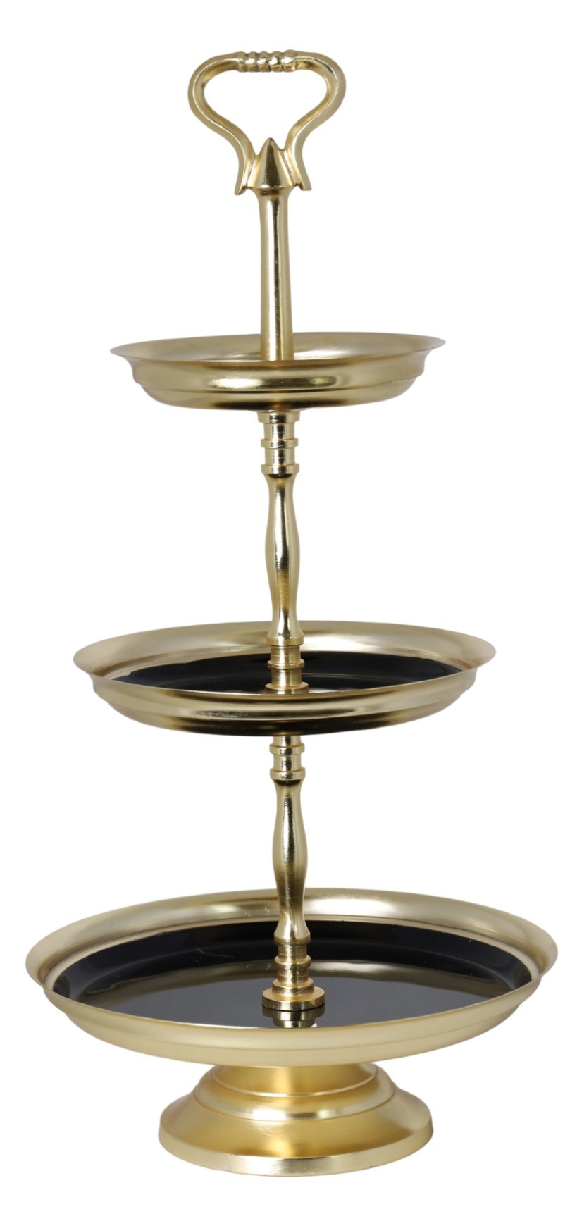 Dodaj wyjątkowego uroku i elegancji do swojego stołu dzięki paterze metalowej SZEMU. Ta stylowa trzypoziomowa patera wyróżnia się subtelnym czarnym szkliwem, które wprowadza do wnętrza delikatność i wyrafinowany styl.