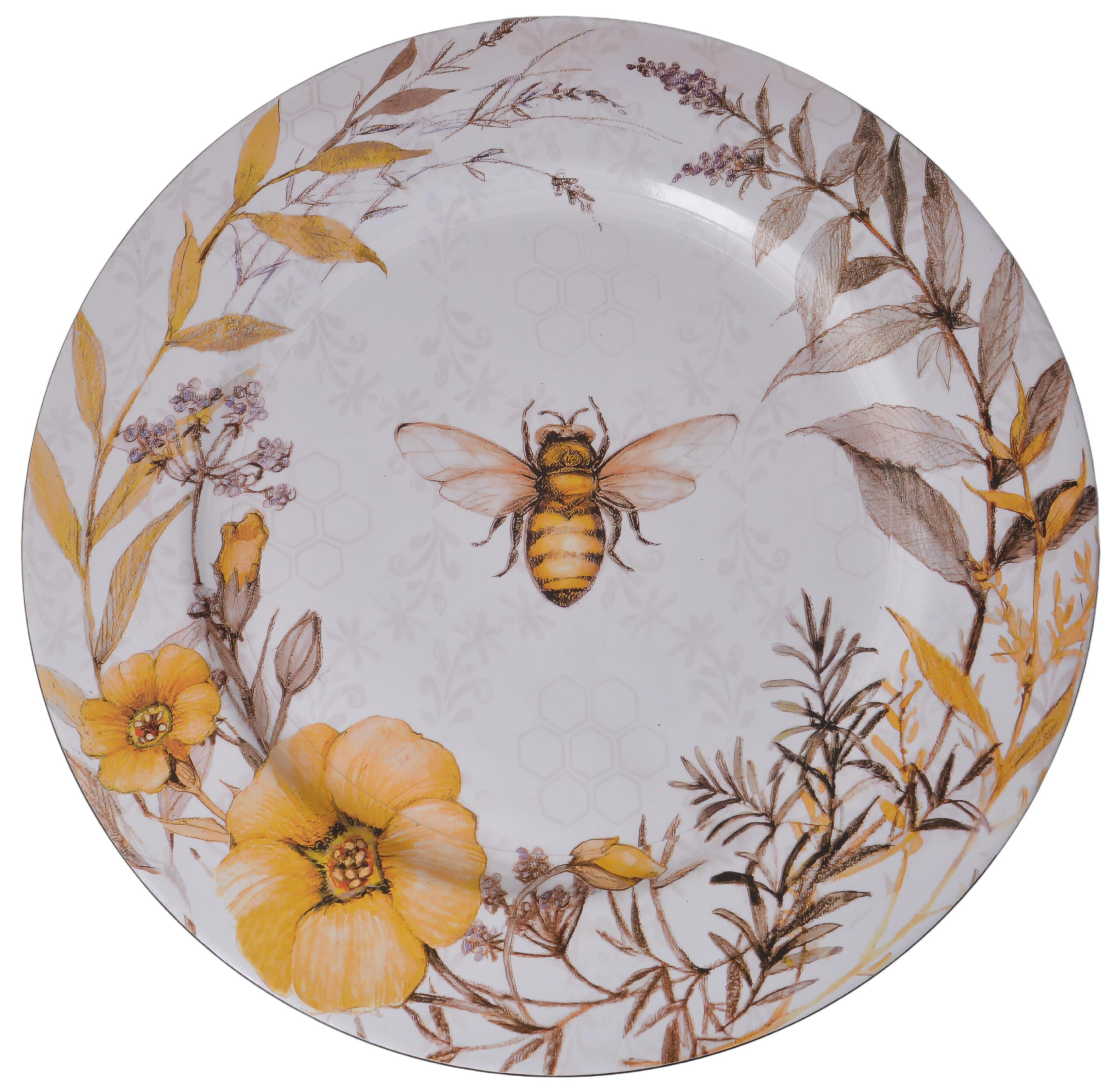 Podtalerz biały z kwiatami i pszczołą LADY to elegancki dodatek do każdej zastawy stołowej. Wykonany z wysokiej jakości materiałów, ozdobiony delikatnymi żółtymi kwiatami i realistycznym wizerunkiem pszczoły, nadaje się idealnie na specjalne okazje oraz codzienne użycie.