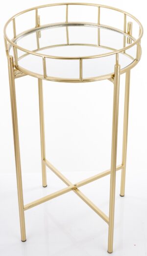 Elegancki stolik MAO z lustrzanym blatem i złotą metalową konstrukcją. Stylowy i praktyczny dodatek do wnętrz glamour.