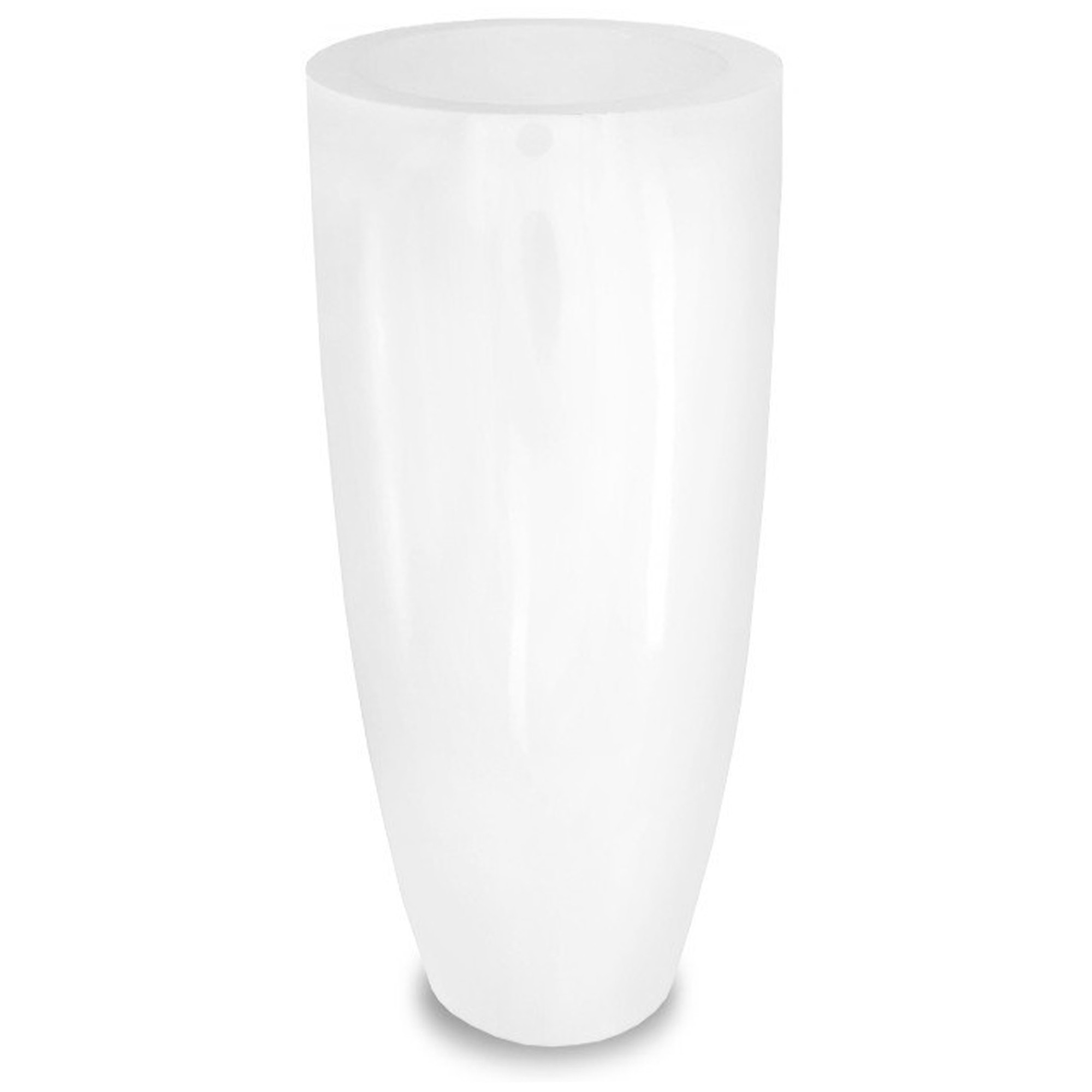Solidny biały wazon ceramiczny o imponujących wymiarach 91 cm wysokości i 36,5 cm średnicy. Jego gładka, biała powierzchnia nadaje mu nowoczesny i minimalistyczny wygląd. Idealny do wnętrz wymagających eleganckich i funkcjonalnych akcentów dekoracyjnych.