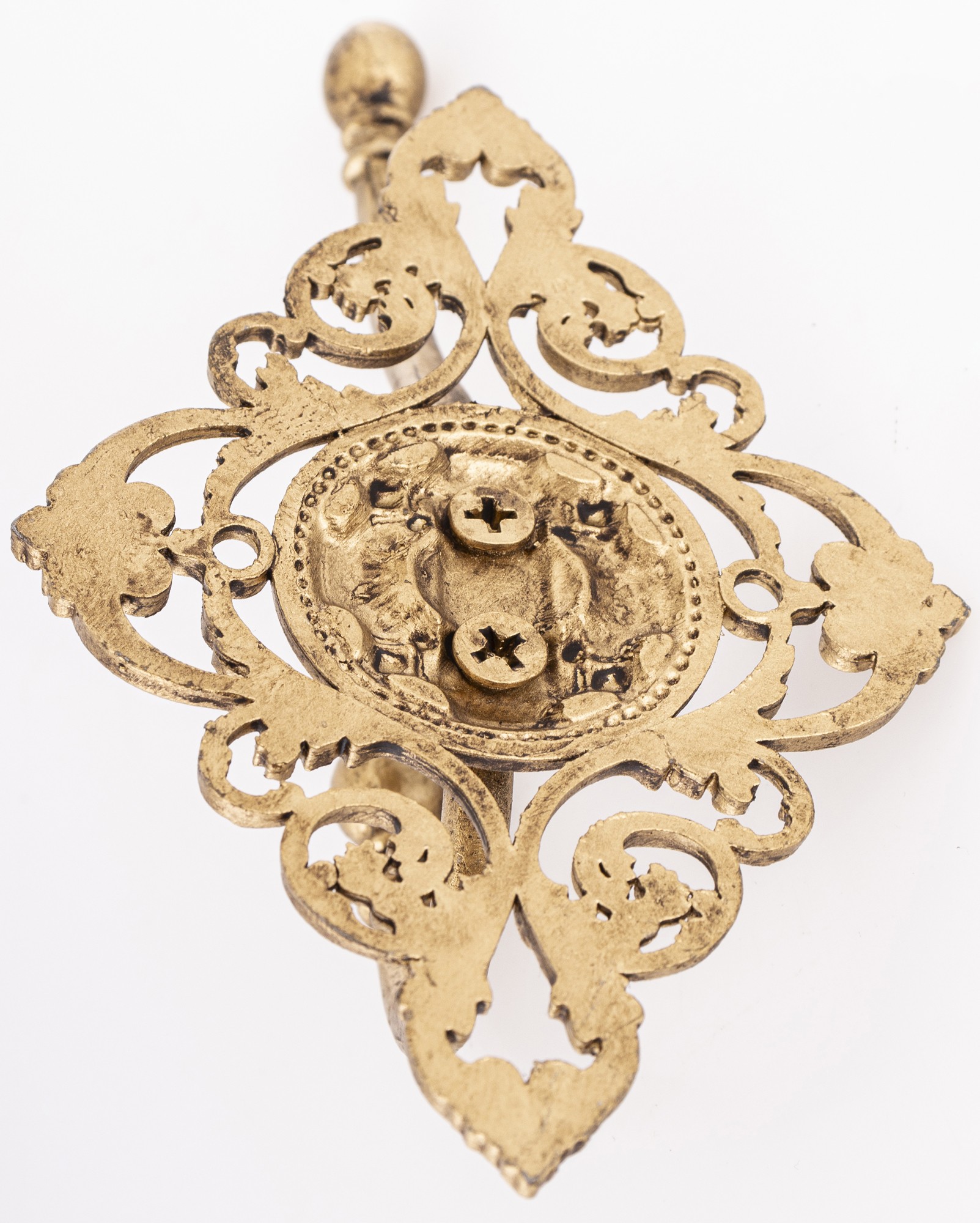 Dekoracyjny wieszak ścienny LEO w stylu vintage to doskonałe połączenie funkcjonalności i elegancji. Wykonany z trwałego metalu, w złotym, postarzałym wykończeniu, wyróżnia się misternymi zdobieniami inspirowanymi klasycznymi ornamentami. Dzięki dwóm haczykom o różnych wysokościach zapewnia wygodne przechowywanie płaszczy, kapeluszy, toreb czy akcesoriów. Doskonale sprawdzi się w przedpokoju, sypialni, garderobie czy nawet łazience, dodając wnętrzu wyjątkowego charakteru. Solidna konstrukcja i dbałość o detale sprawiają, że jest nie tylko praktycznym elementem wyposażenia, ale także efektowną dekoracją ściany.