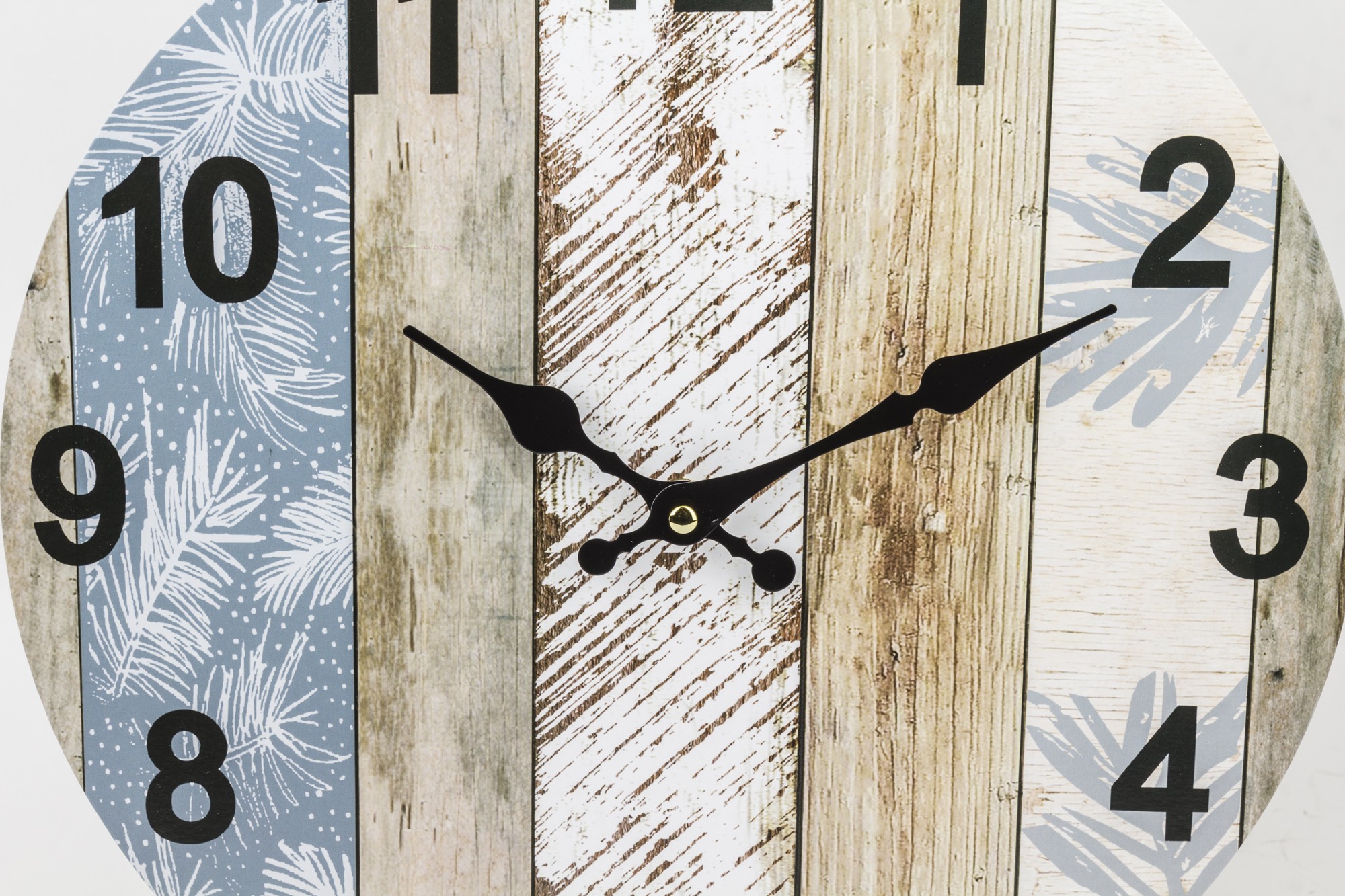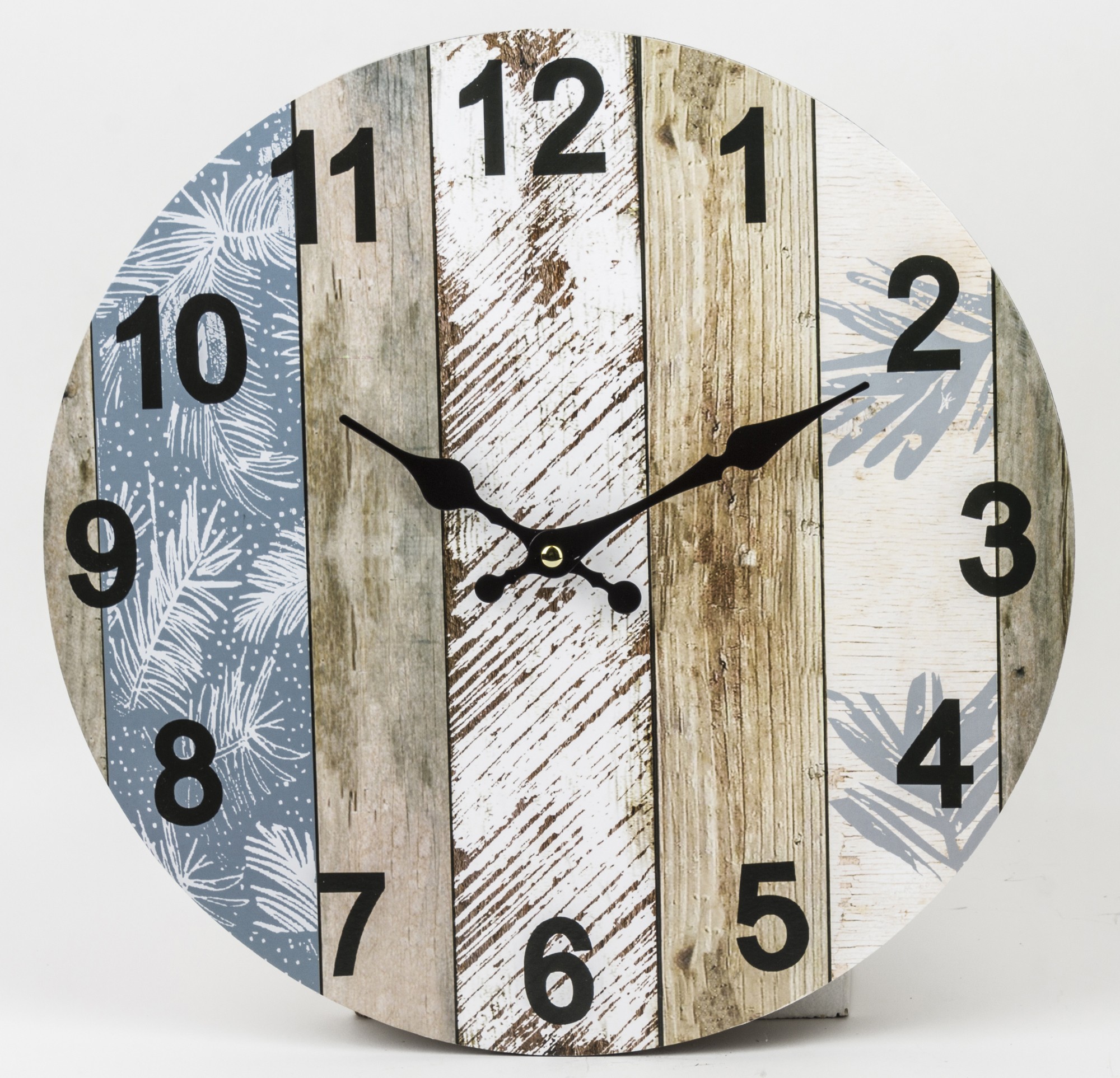 Przedstawiamy zegar bez ramki wykonany z płyty MDF, który wyróżnia się niezwykłym designem. Jego powierzchnia podzielona jest na pionowe panele, z których każdy ma inny wzór i kolor, wszystkie nawiązujące do drewna i natury. Ta różnorodność paneli tworzy interesujący i estetyczny efekt wizualny, który przyciąga wzrok. Wyraźne czarne cyfry arabskie oraz wskazówki zapewniają łatwość odczytu godziny, nawet z większej odległości. Zegar ten jest doskonałym dodatkiem do wnętrz nowoczesnych, eklektycznych oraz tych inspirowanych naturą. Jego oryginalny design sprawia, że jest nie tylko praktycznym urządzeniem, ale również stylowym elementem dekoracyjnym. To idealny wybór dla osób ceniących unikalne dodatki. Dodaj swojemu wnętrzu charakteru i stylu dzięki temu wyjątkowemu zegarowi.